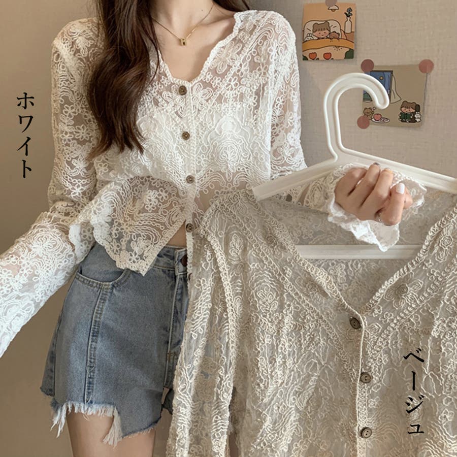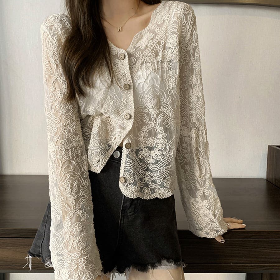 レースブラウス カーディガン Vネック 春 春服 韓国ファッション 韓国