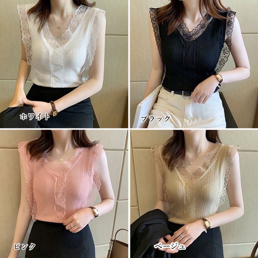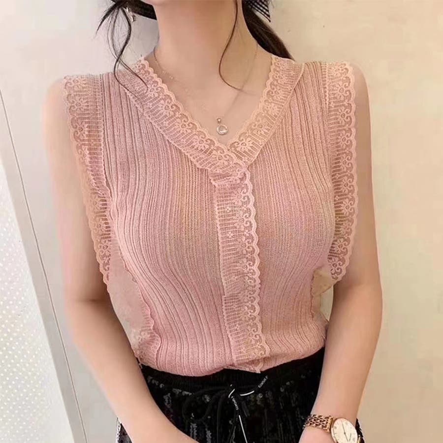 Vネック レースキャミソール レディース
