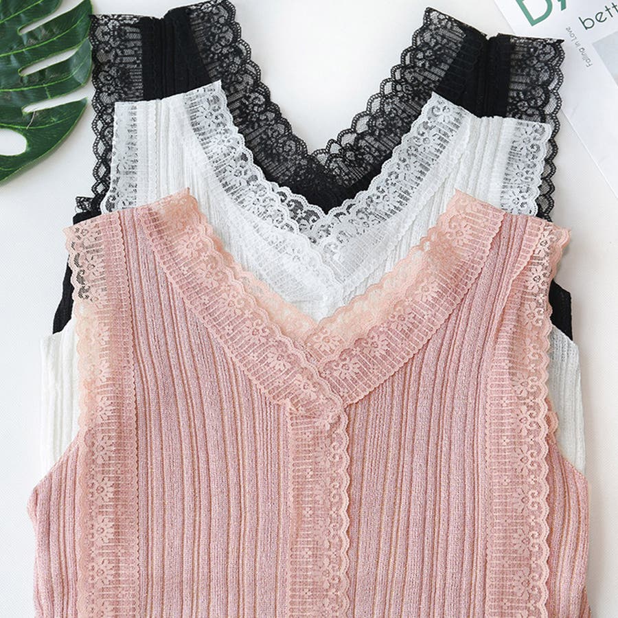 楽で可愛いVネックレースキャミソール