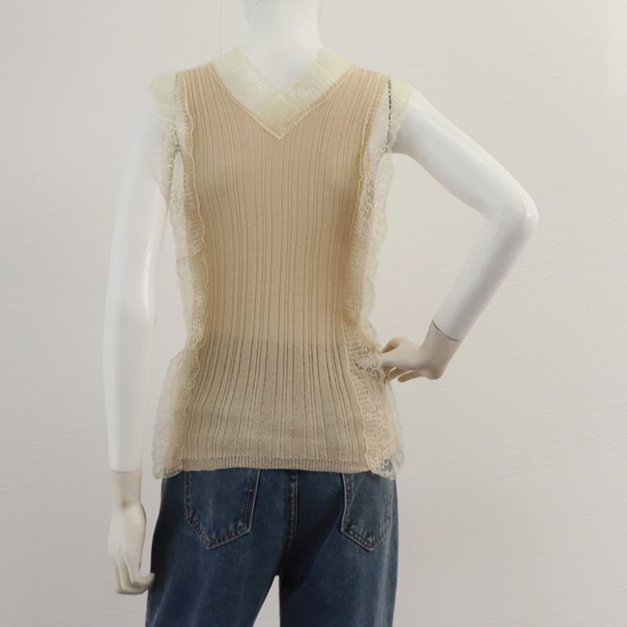 春ニットウェア薄手 ラッセルレース夏服 インナートップス白