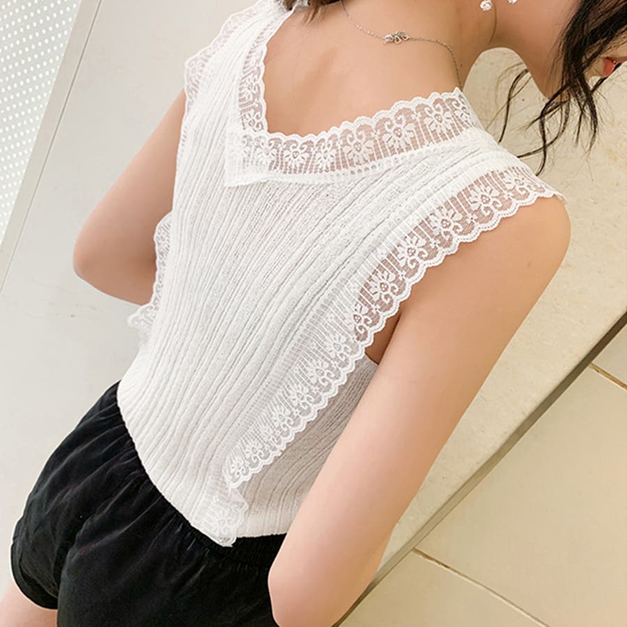 レースが施されておりフェミニンな雰囲気に