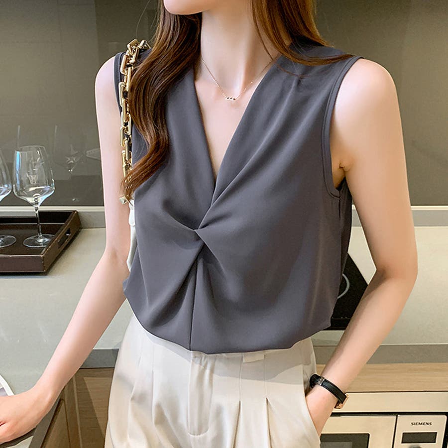 ギャザーブラウスVネックレディースシャツ
