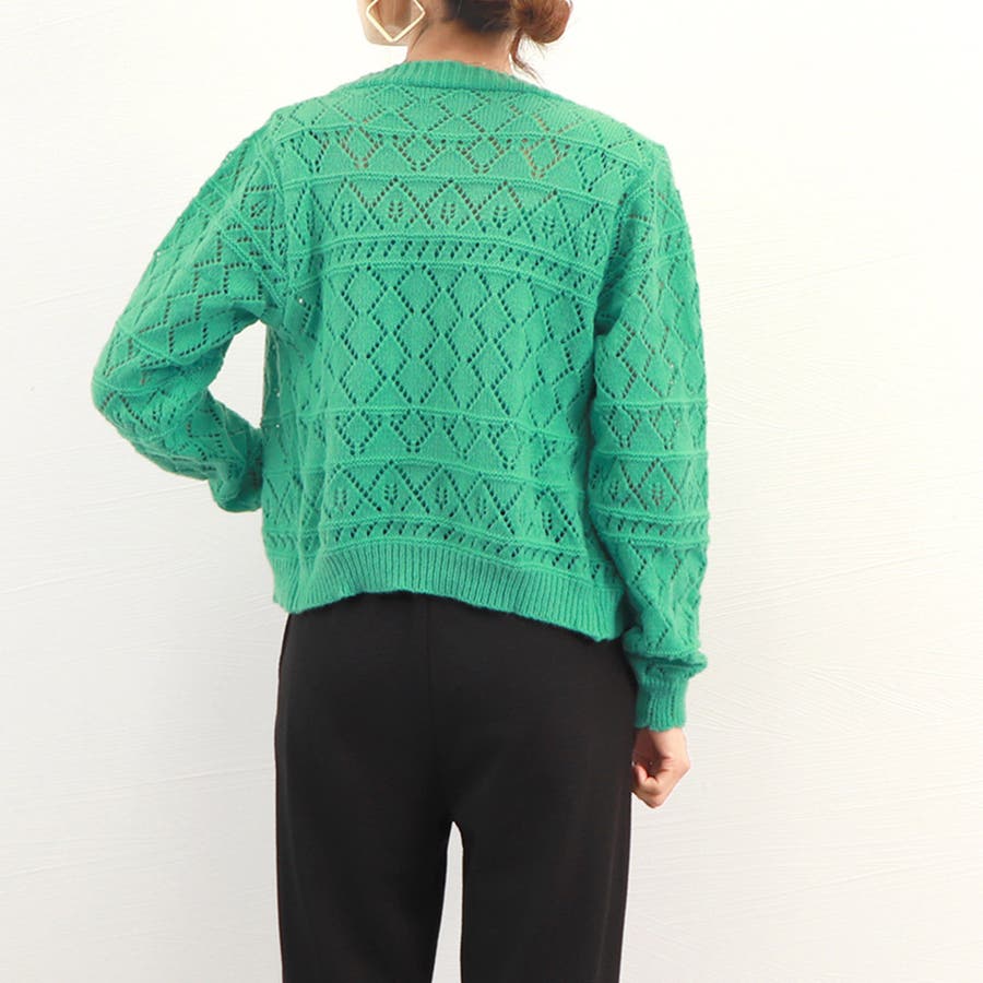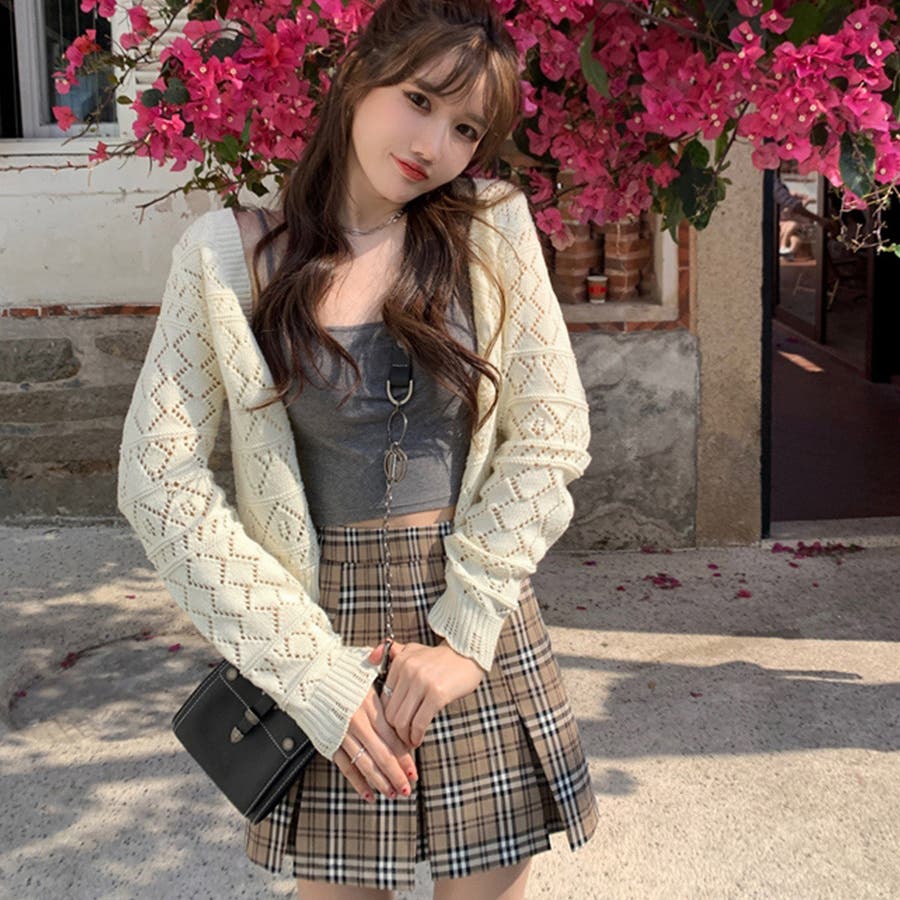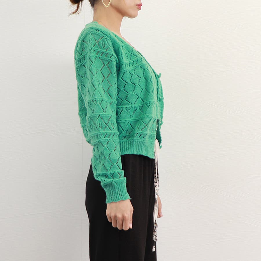 カーディガンはボタン付きなので、ボタンを閉めてトップスとしてもおすすめ