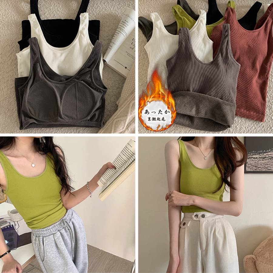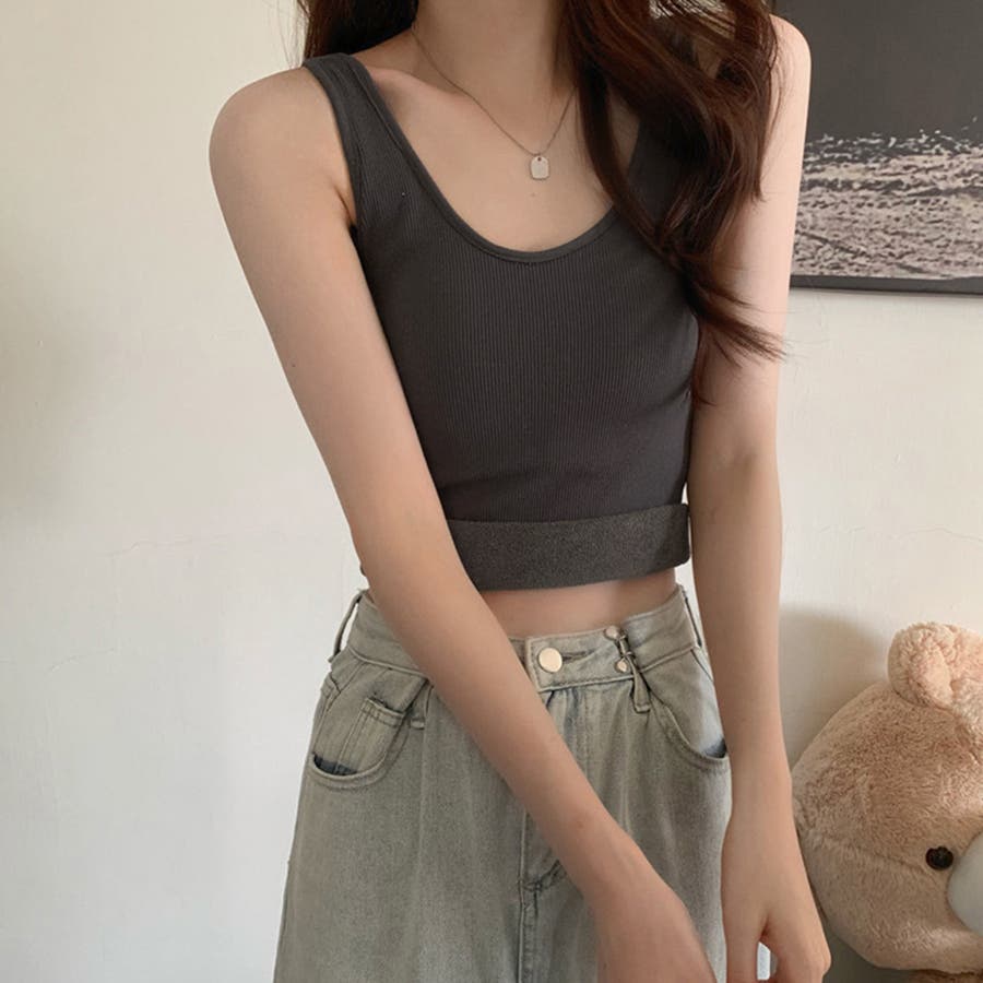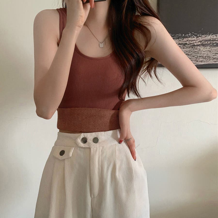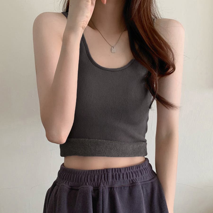 【ブラック】裏微起毛 リブタンクトップ レディース冬