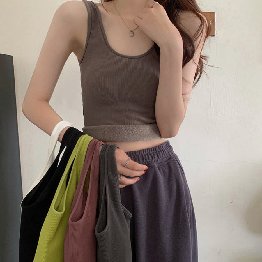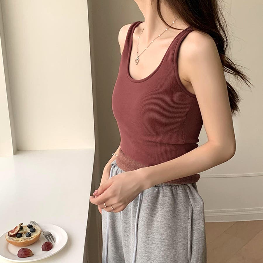 ふんわりと柔らかく、暖かみのある裏微起毛生地でお作りしたリブタンクトップ