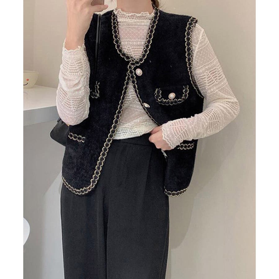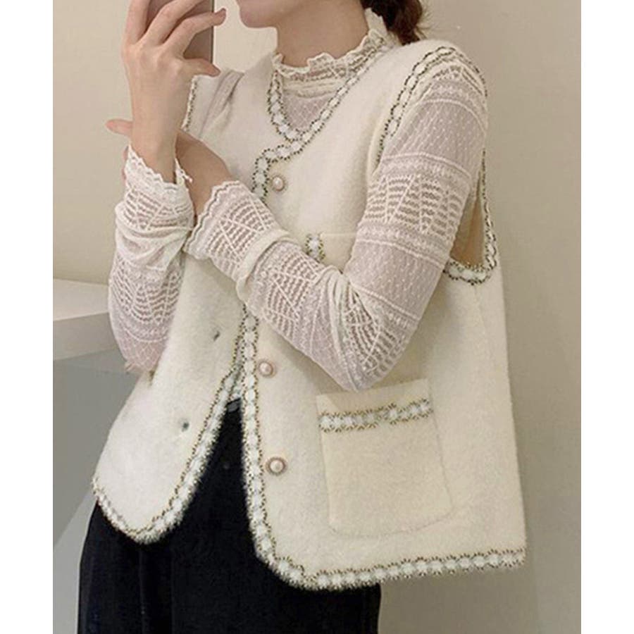 ポケット付トップス あったかベスト秋冬 大人ジャケット冬服