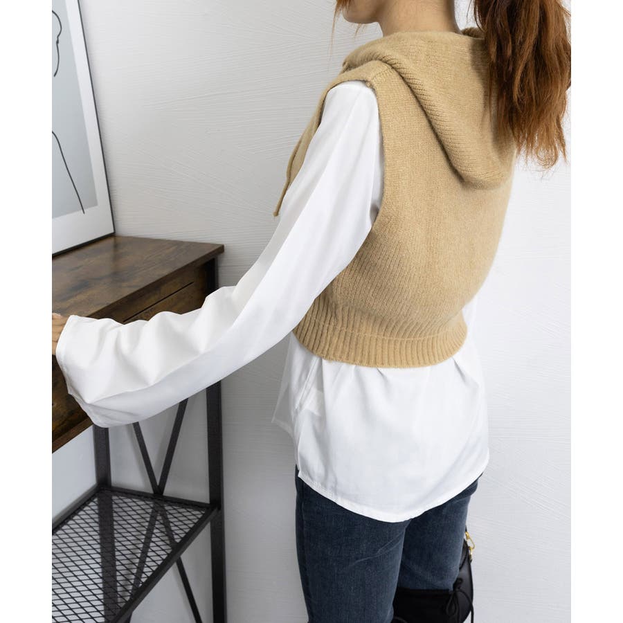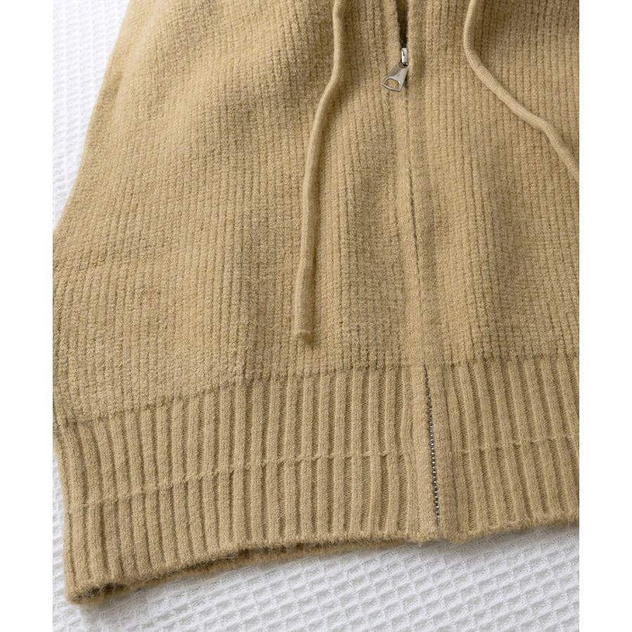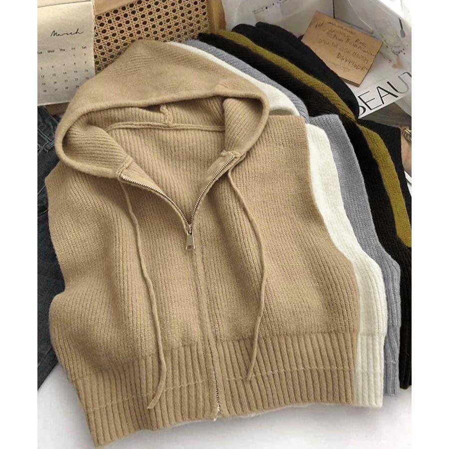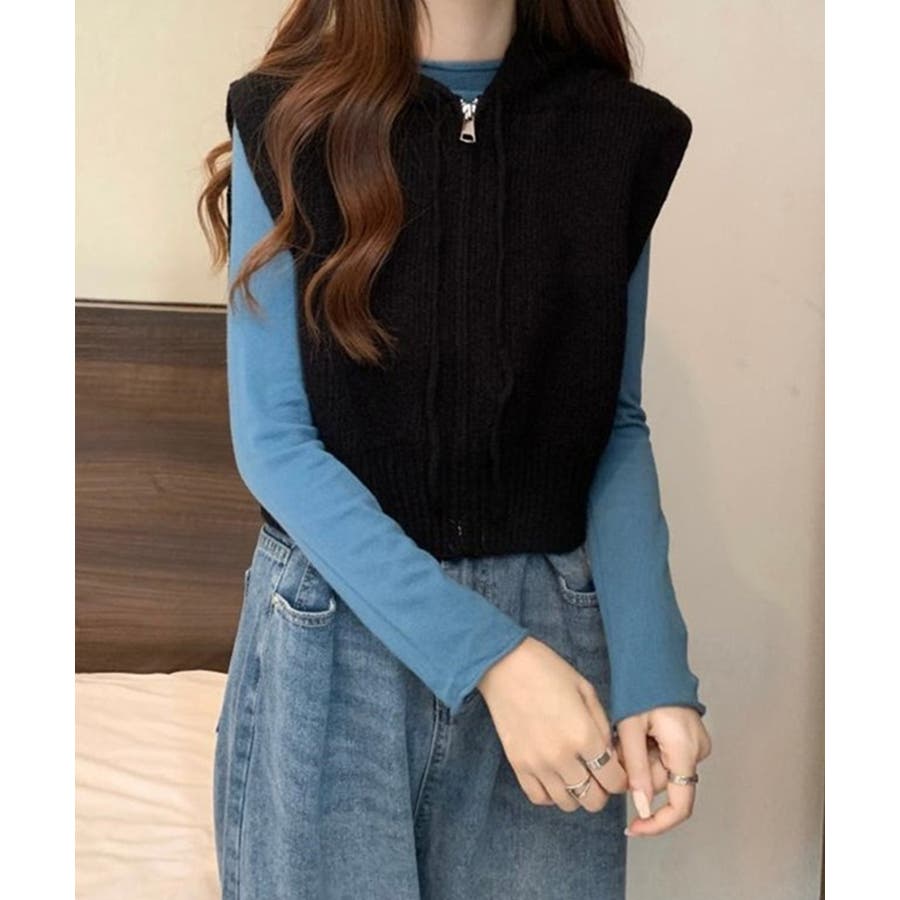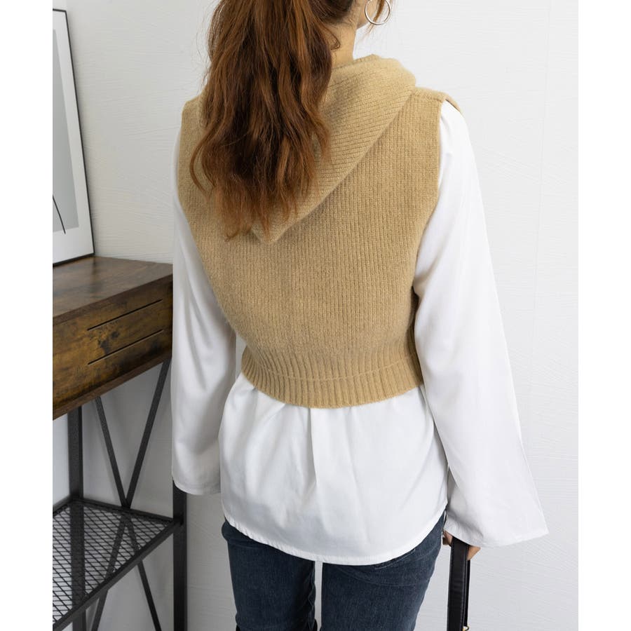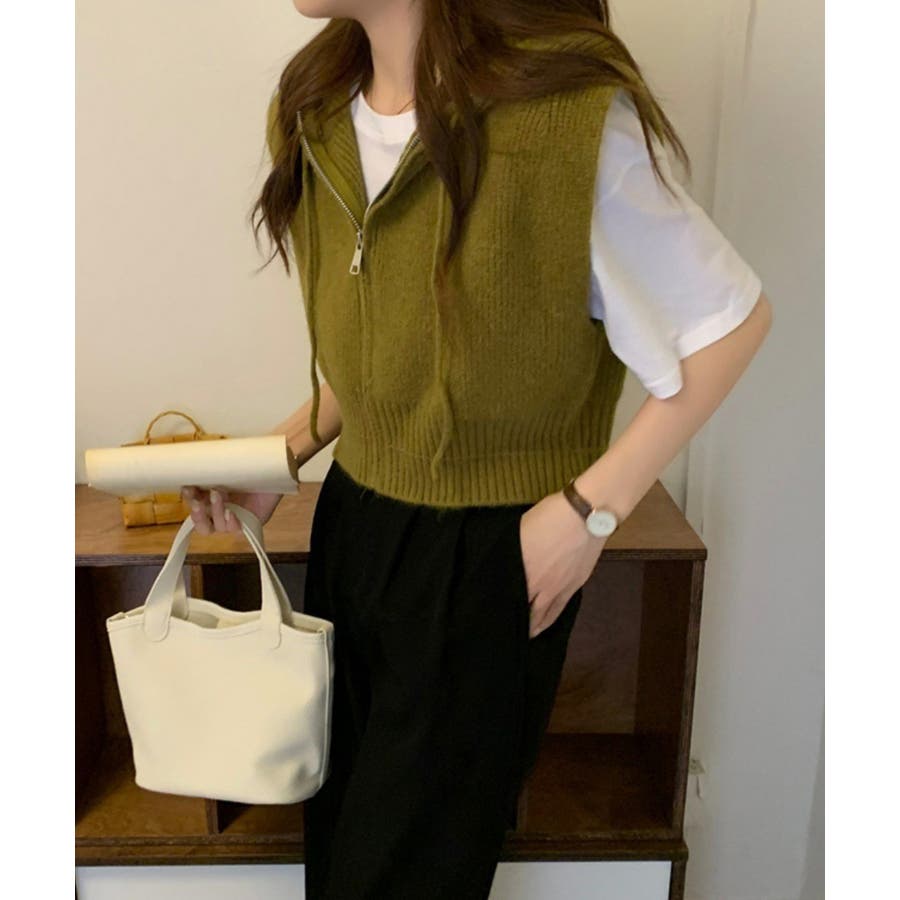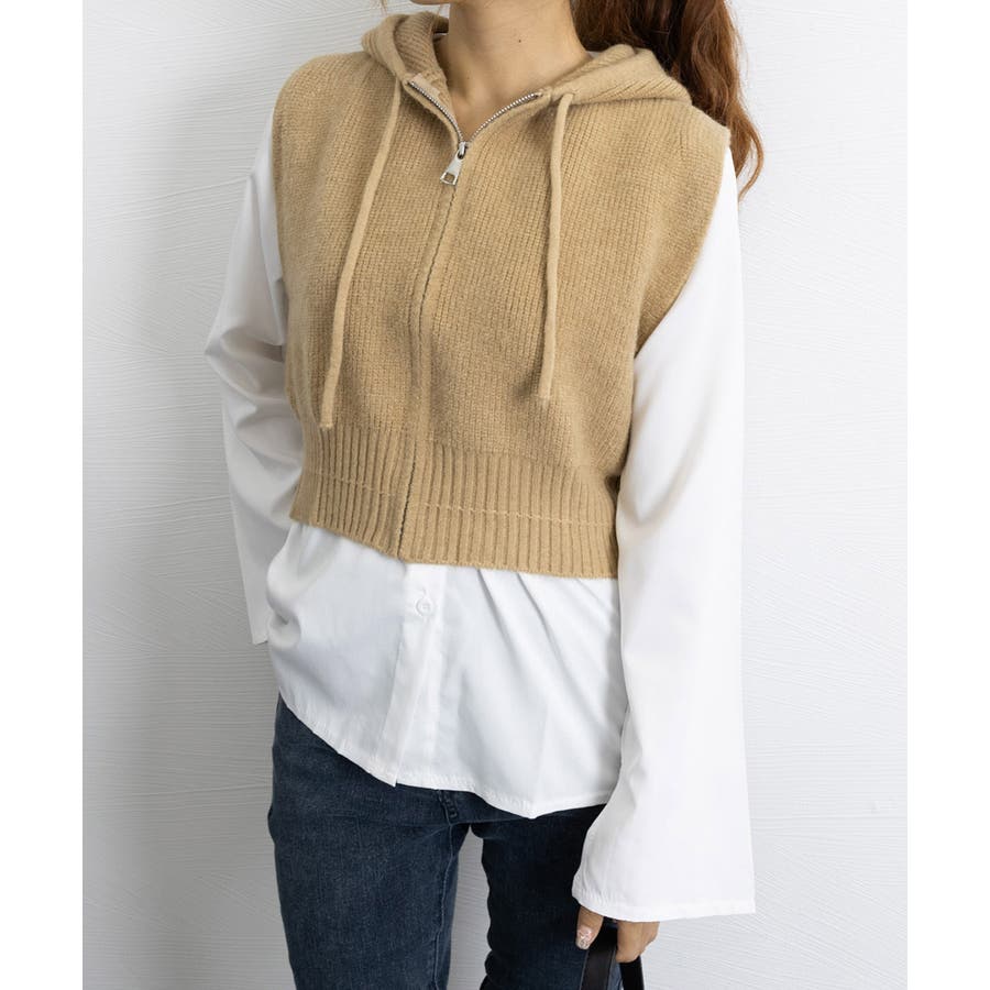 フード付きジップニットベスト ショート丈