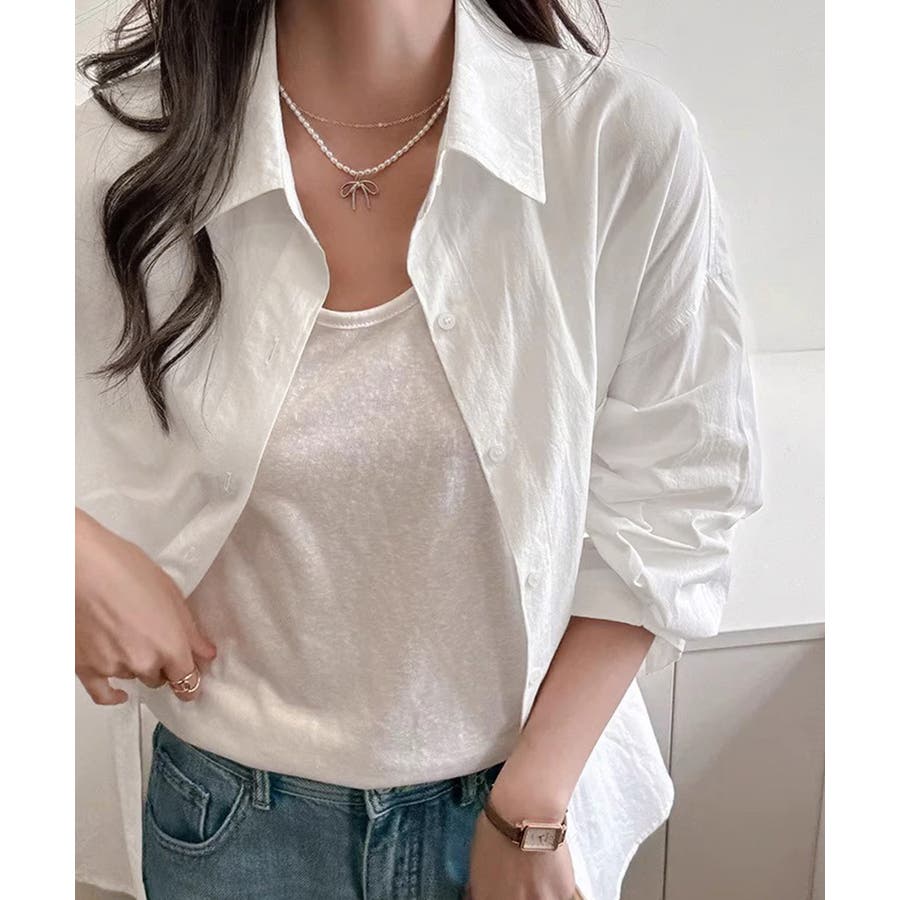 大人シャツ 着やせ Vネックゆるシャツ ベーシック襟シャツ