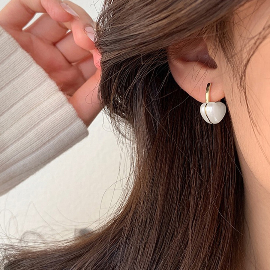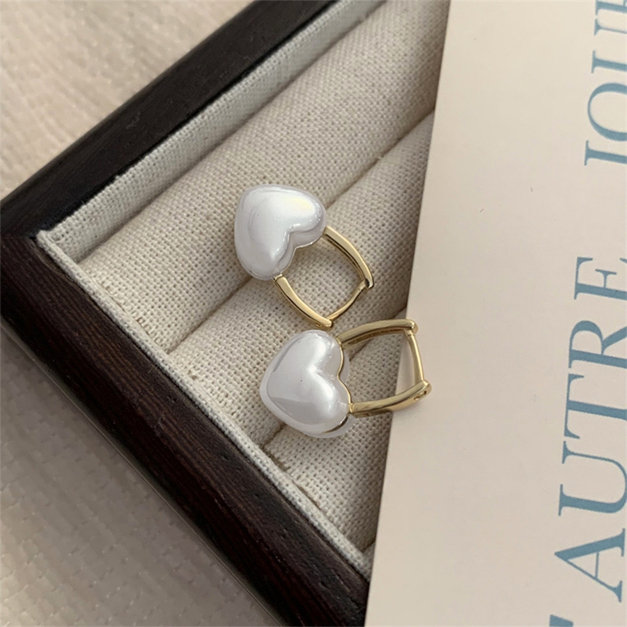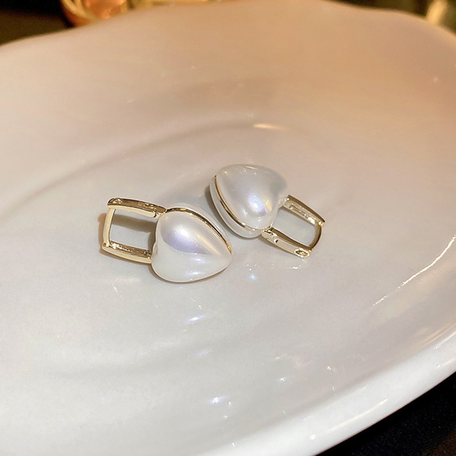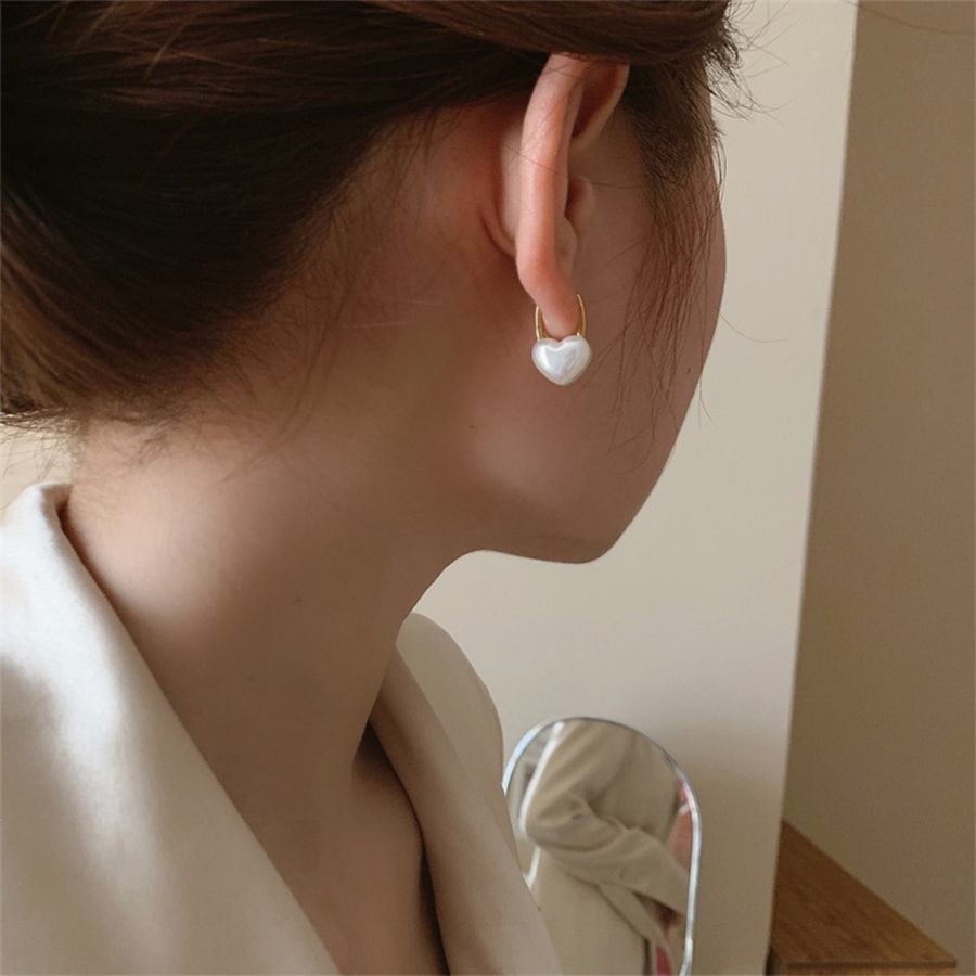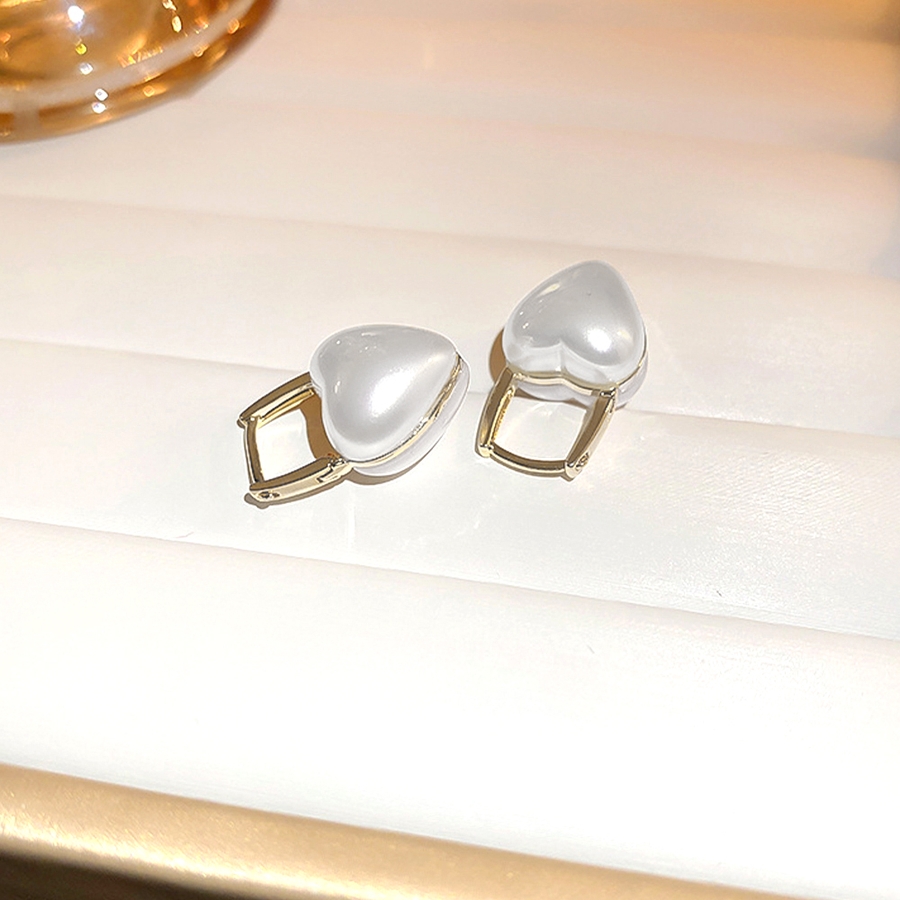 美しい光沢のあるフェイクパールを使用したハートピアス