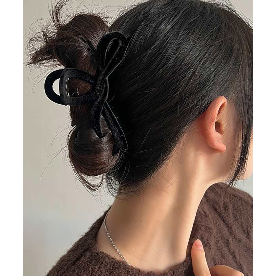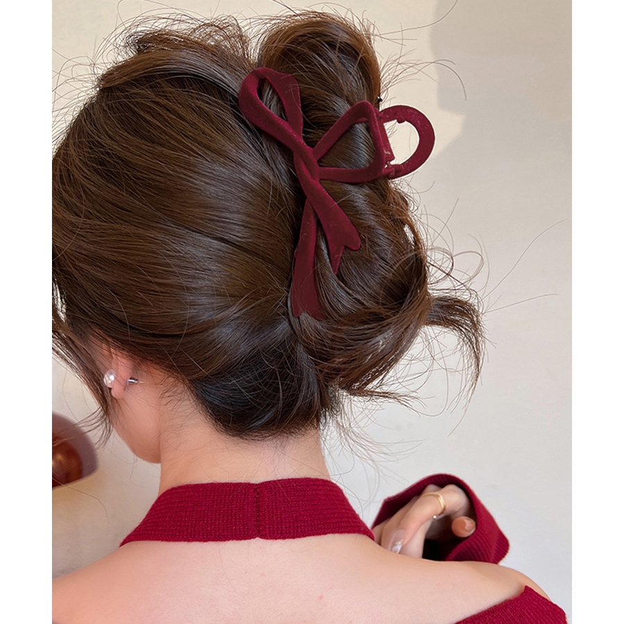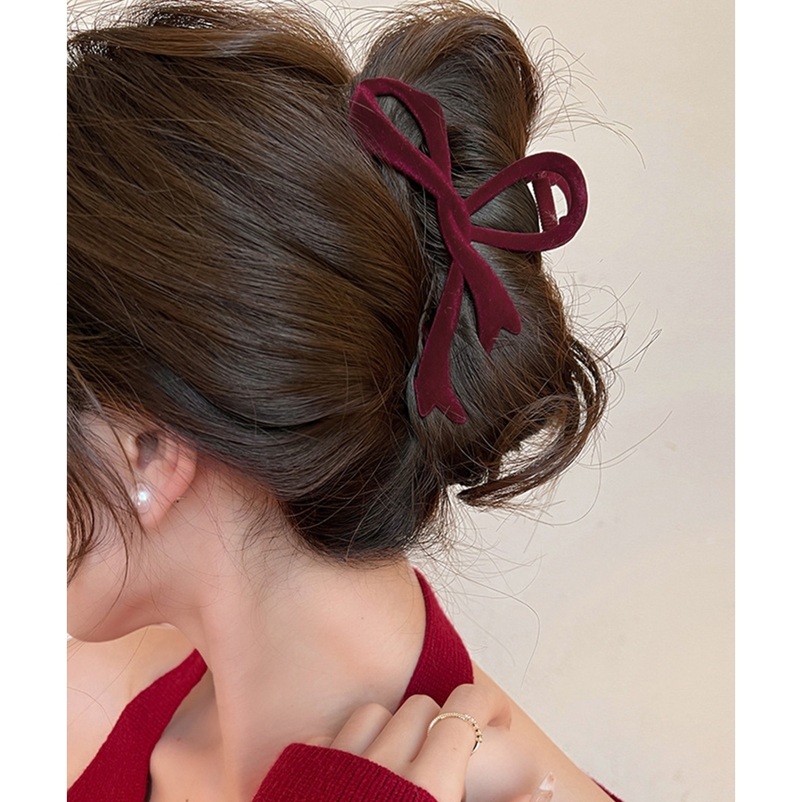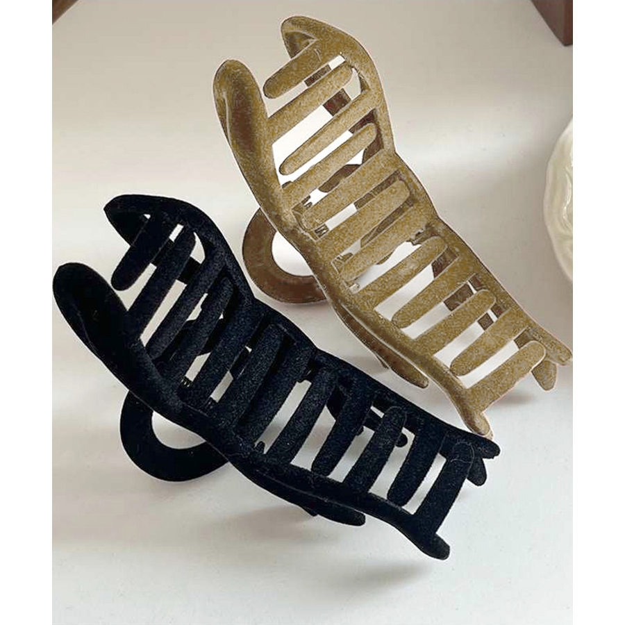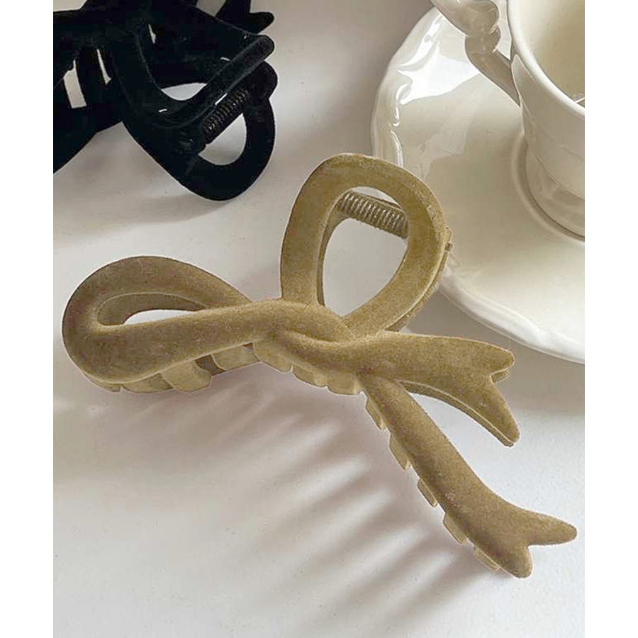 ベロア風な起毛感のある質感が上品な印象のヘアクリップ。