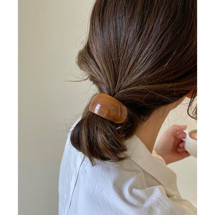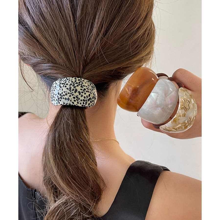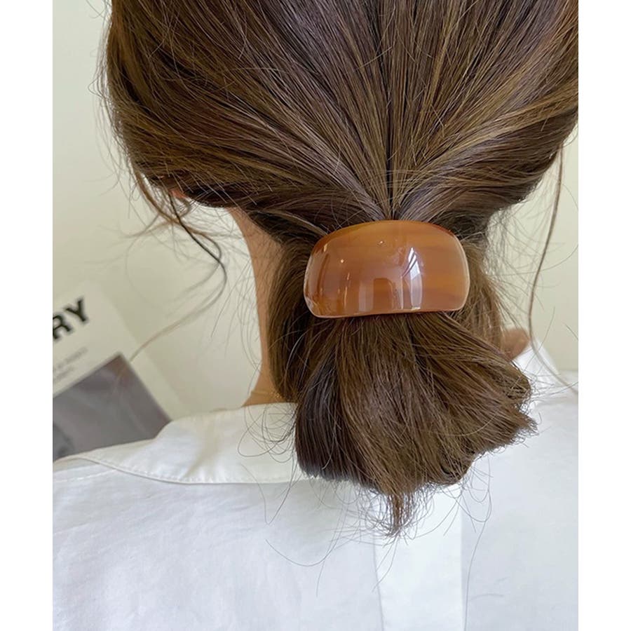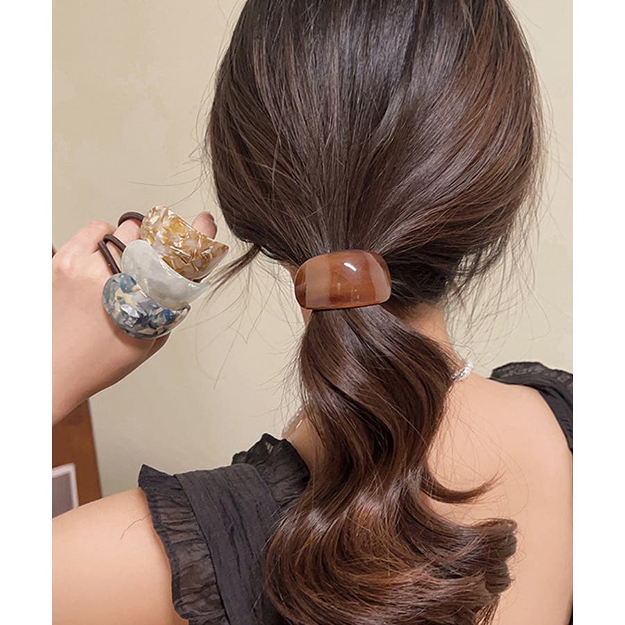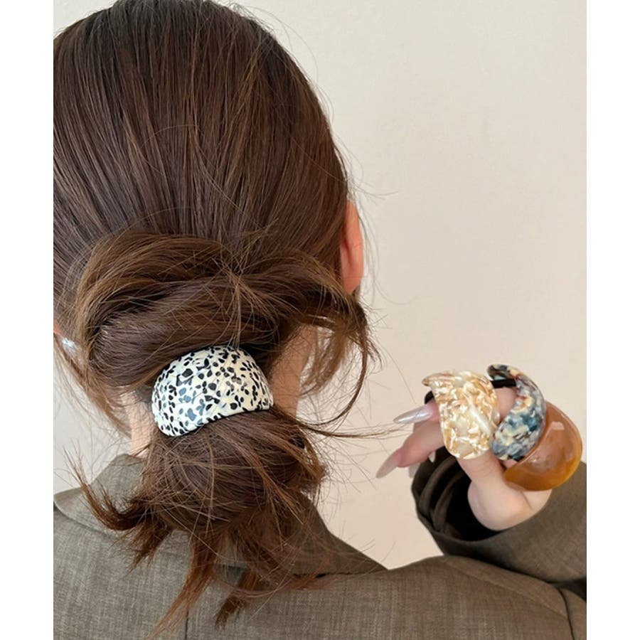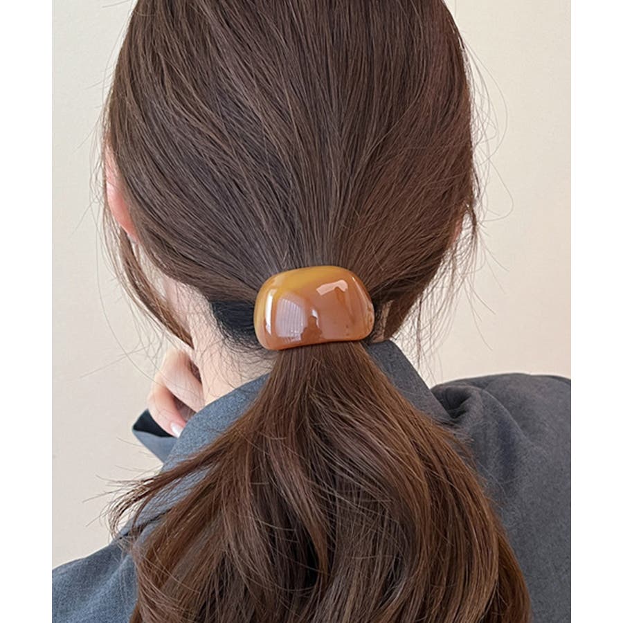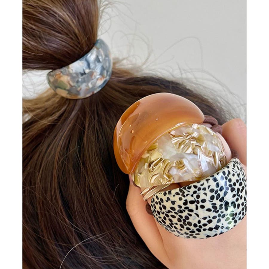 緩やかな半円カーブのモチーフが、ポニーテールやヘアアレンジの結び目をおしゃれにカバー。
