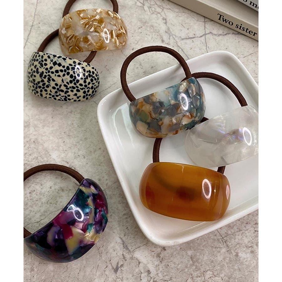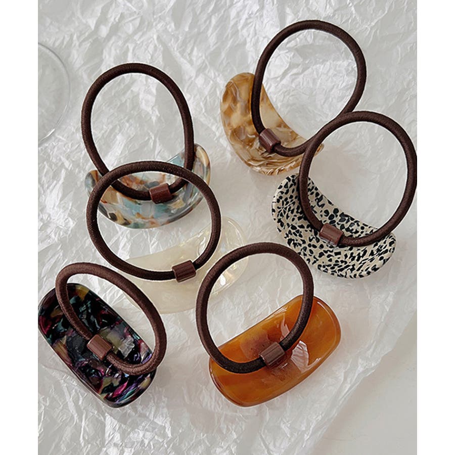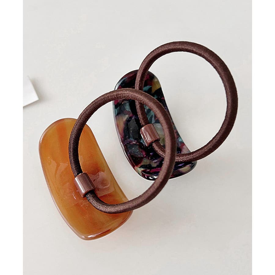 ミックスカラーカーブヘアゴムレトロお洒落
