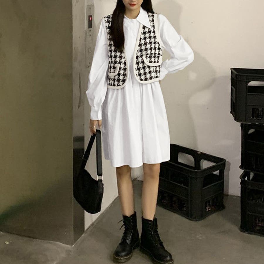 ベストシャツワンピースセット レディース