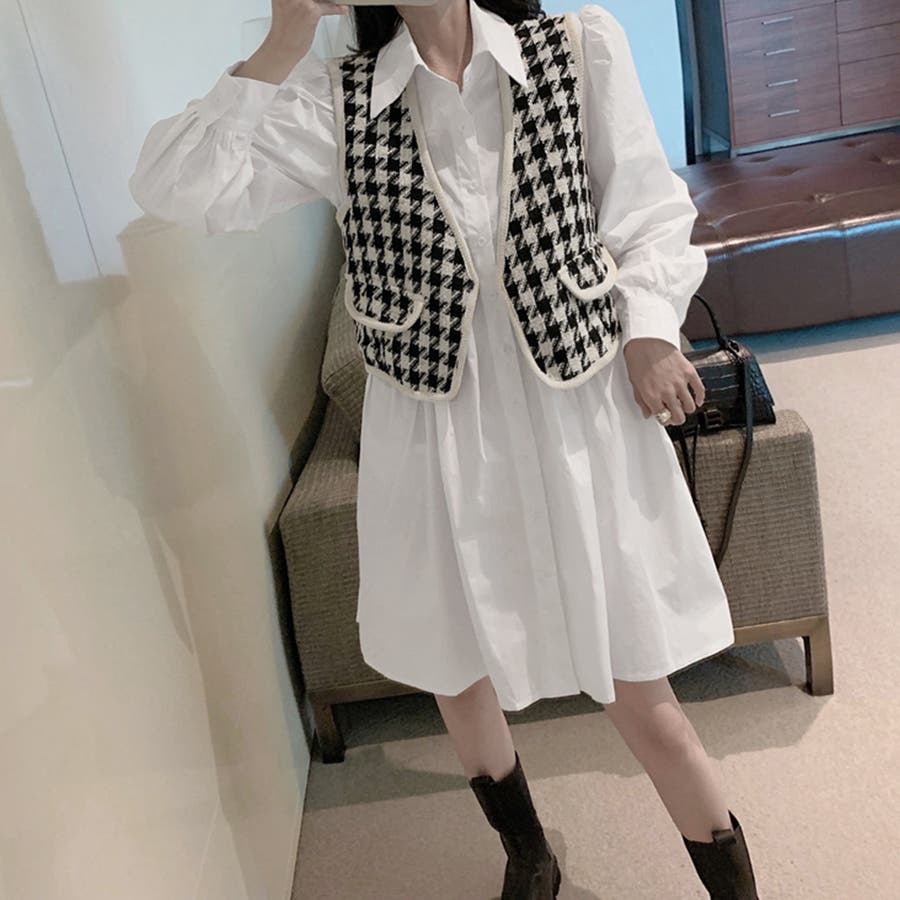 トレンドのコーデが即決まる、シャツワンピとベストの2点セットが登場