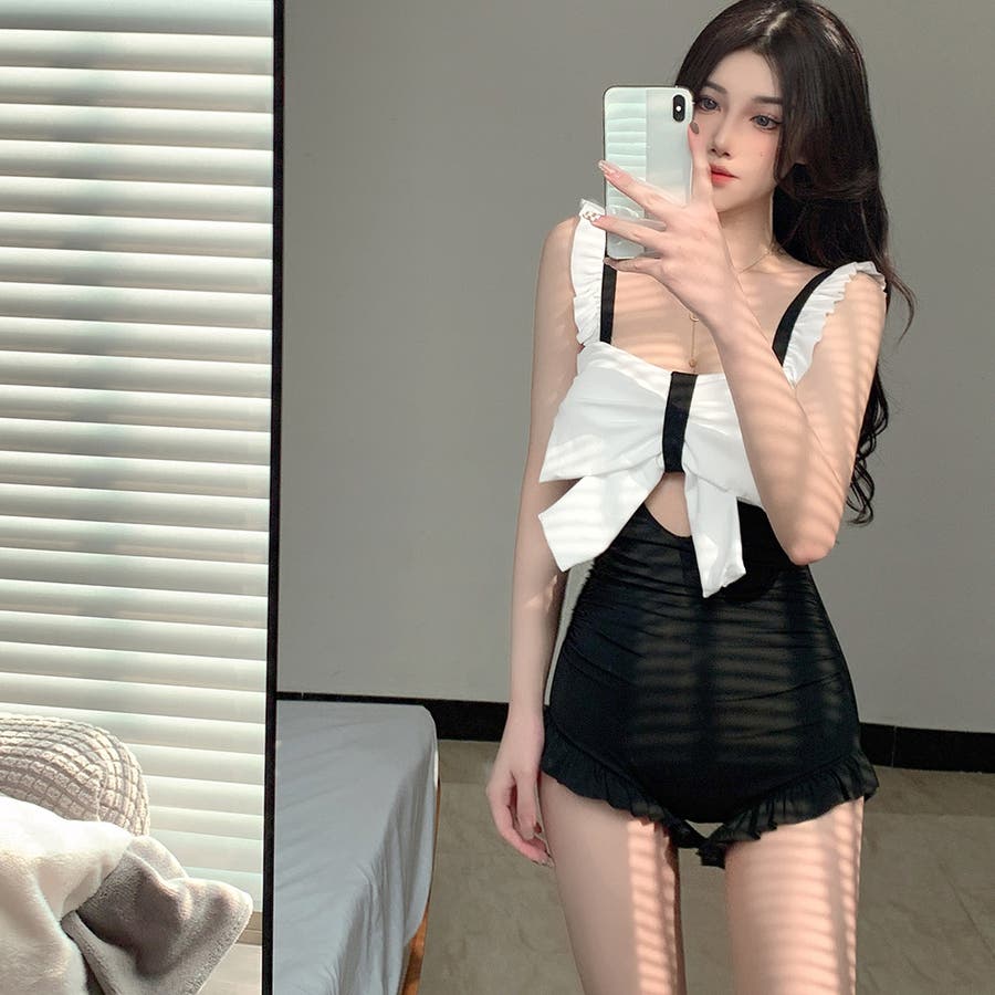 モノキニタイプなので体のラインがきゅっと引き締まって見え、さりげなくスタイルアップもかなえる