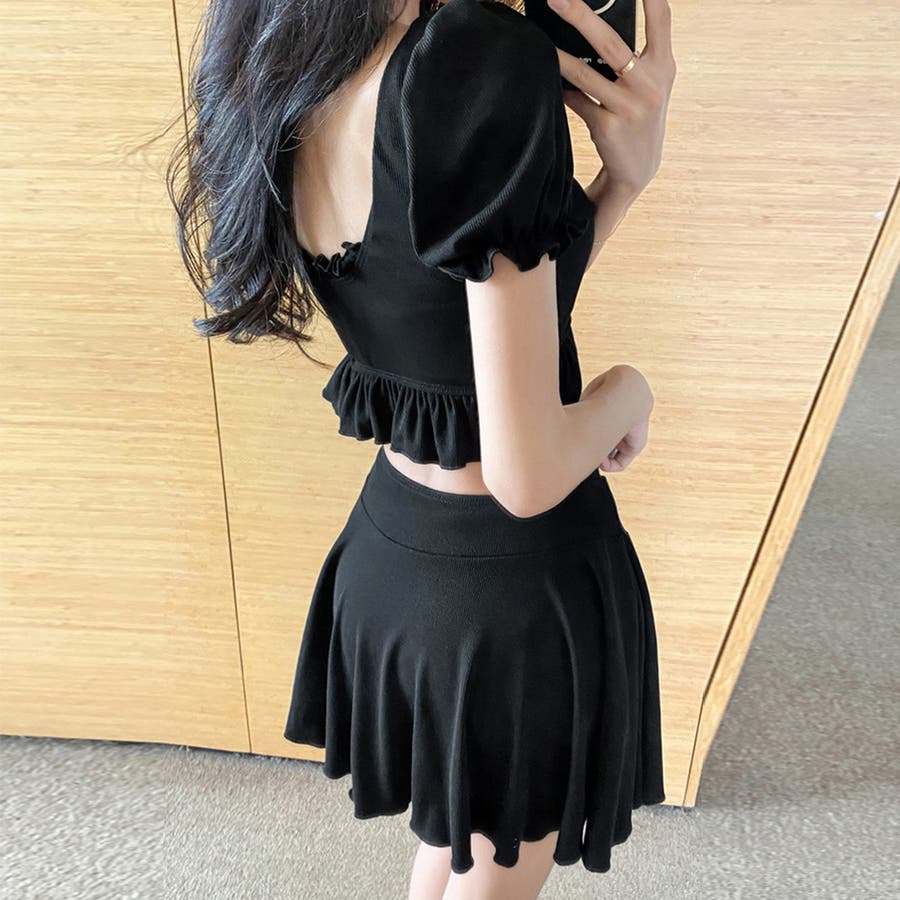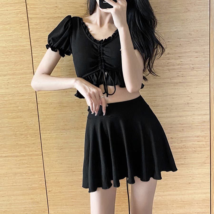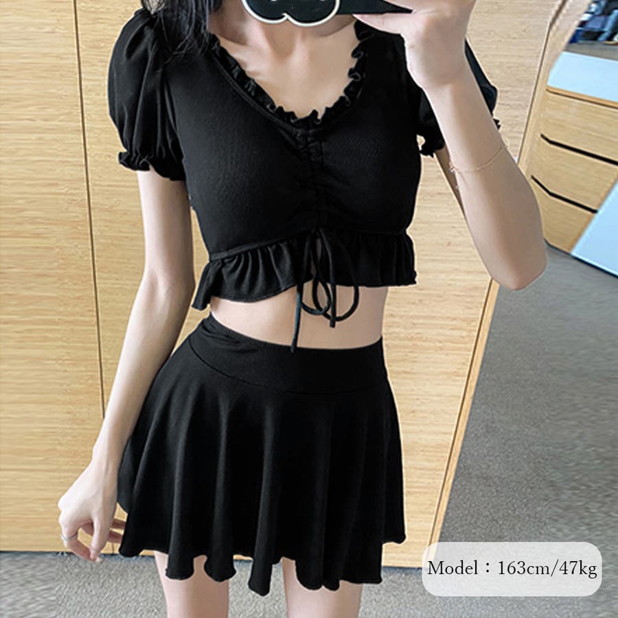 フリル水着スカート レースアップビキニ 可愛い 上下セット