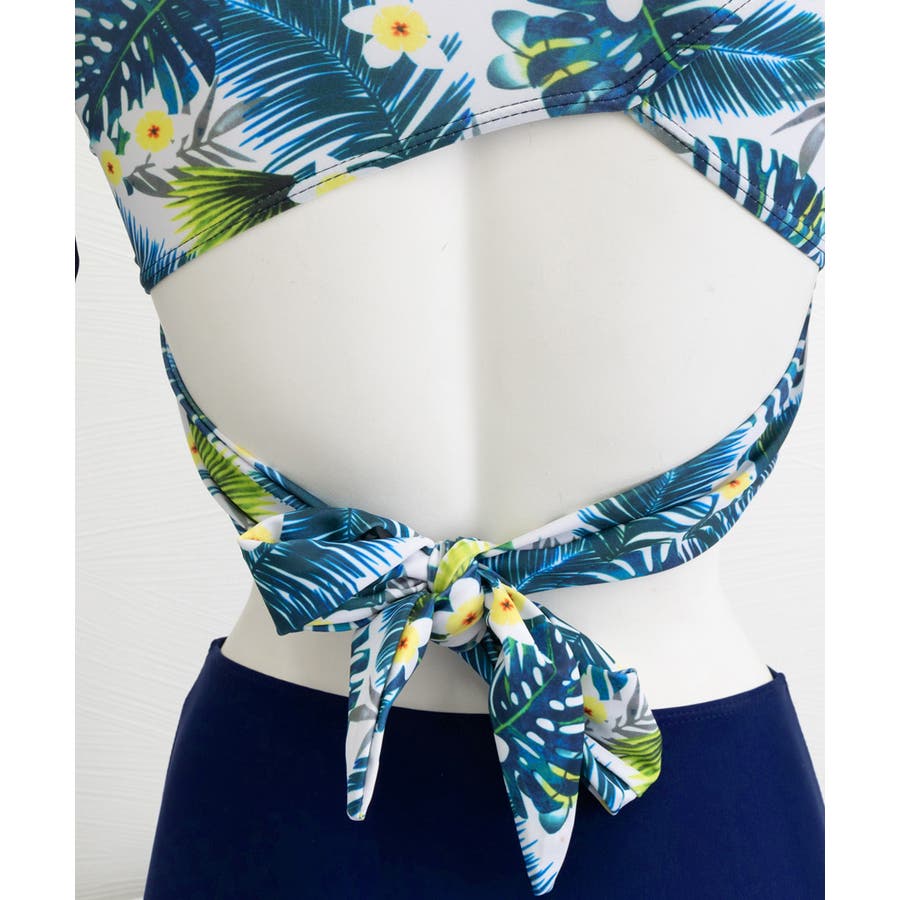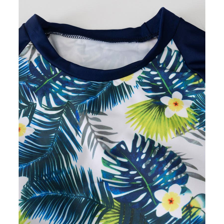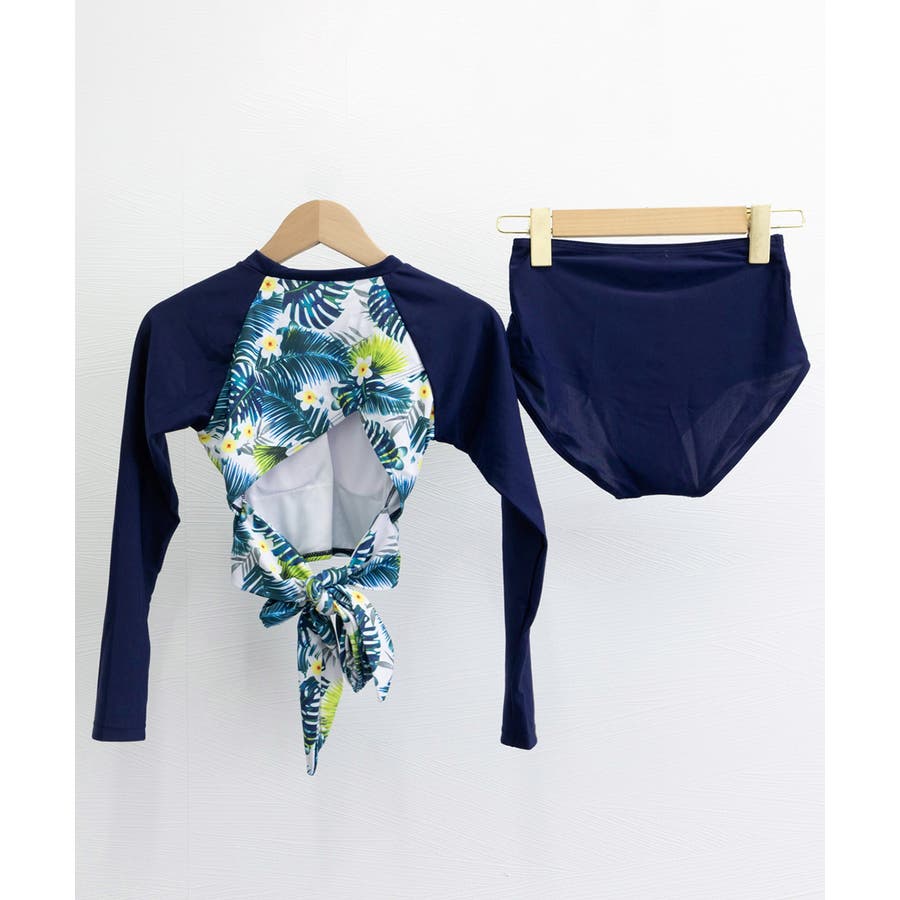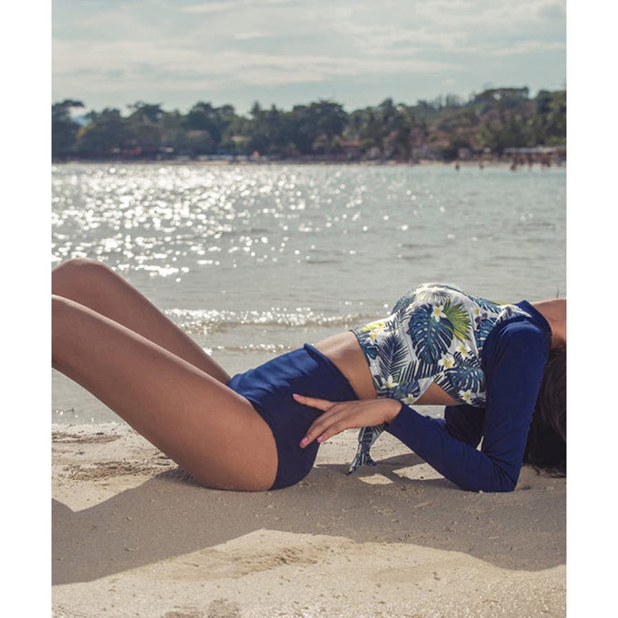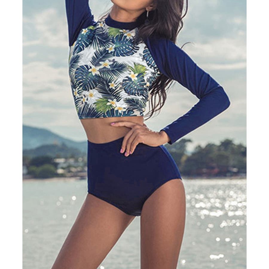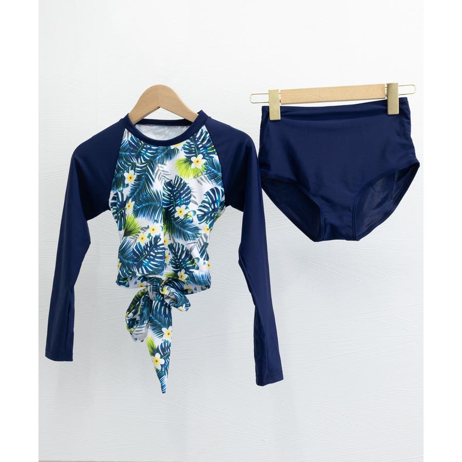 花柄長袖トップスとハイウエストデザインショーツの上下セット水着