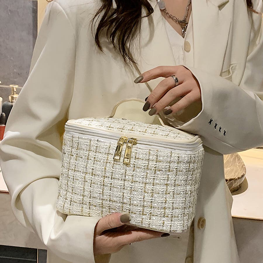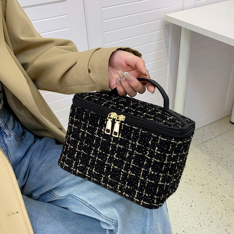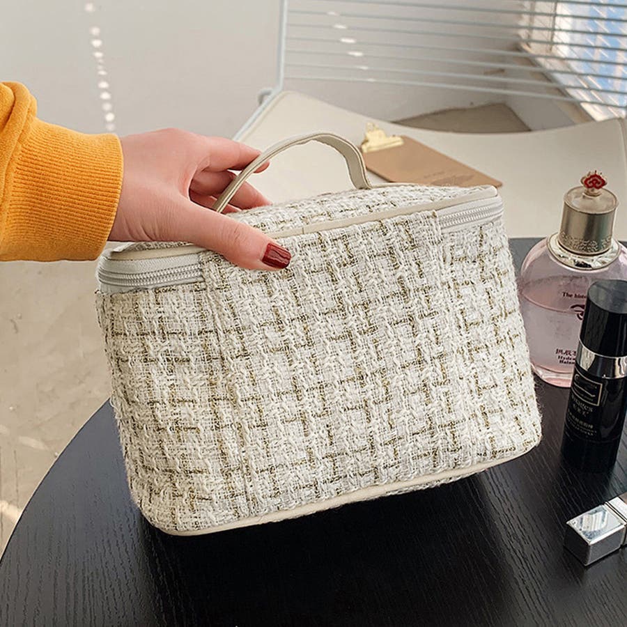 ツイード風小物入れ 化粧箱 持ち手付き 整理整頓グッズ軽量