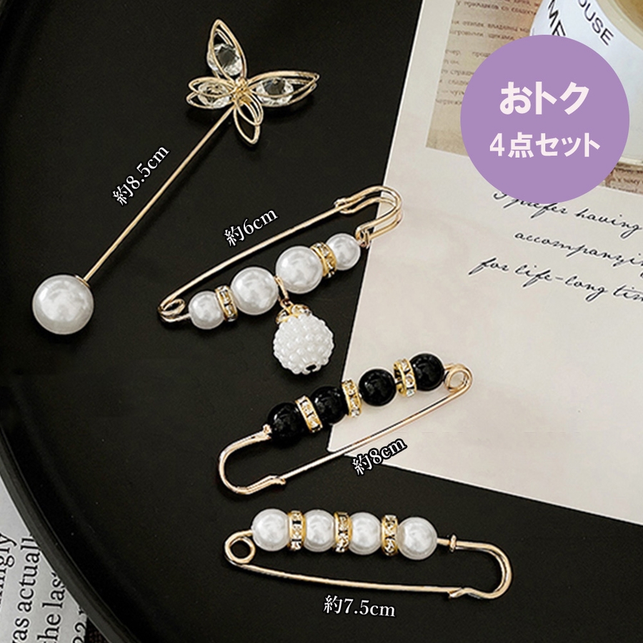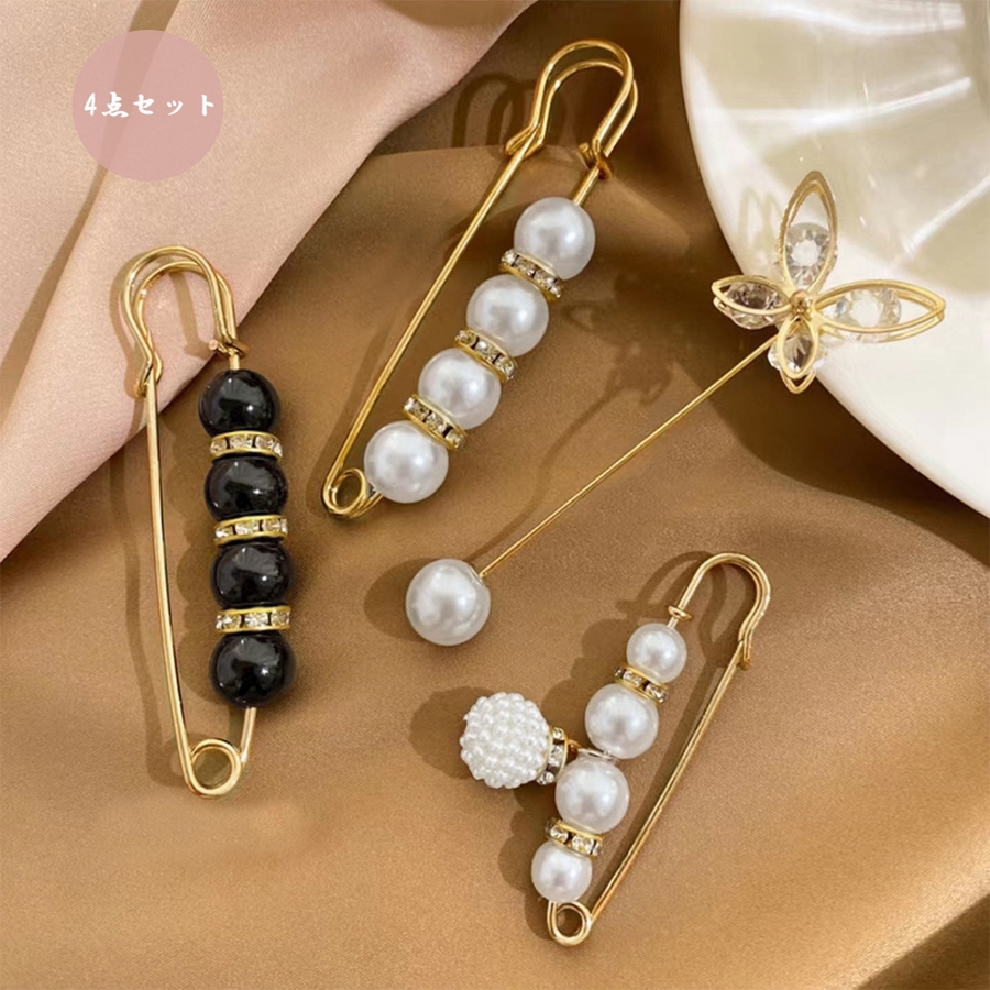 パールやラインストーンを合わせた上品なキルトピン4点セット