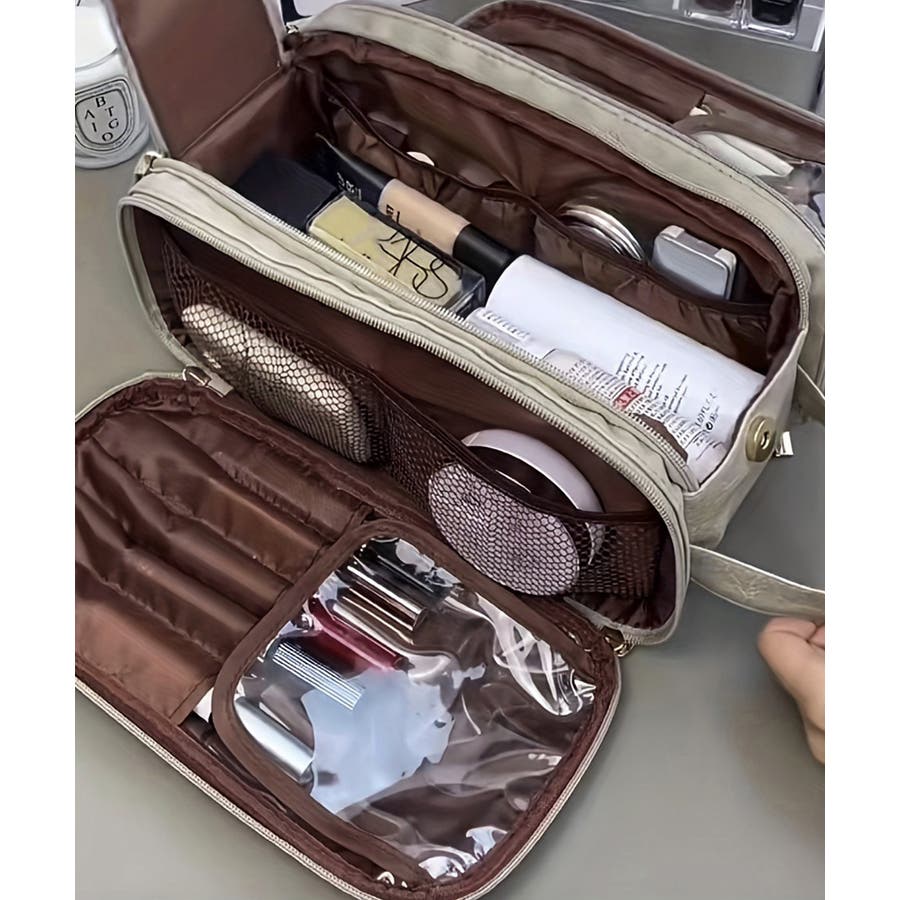 便携式お泊りバッグ 仕切りメイクポーチ メイクブラシ 収納