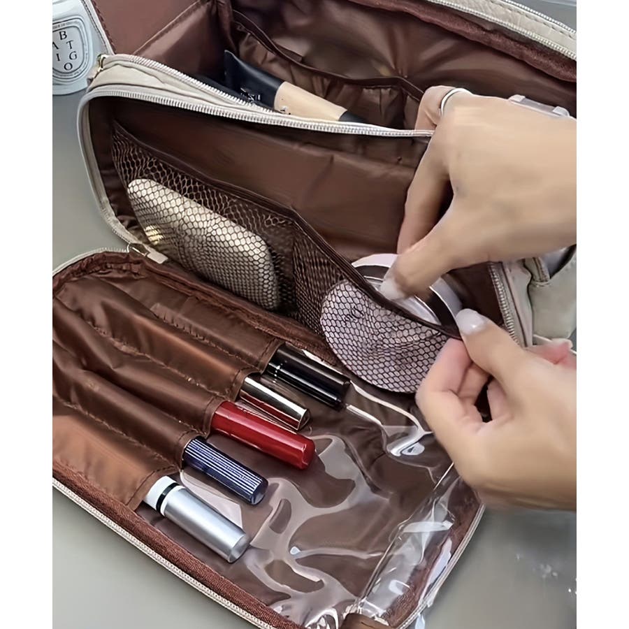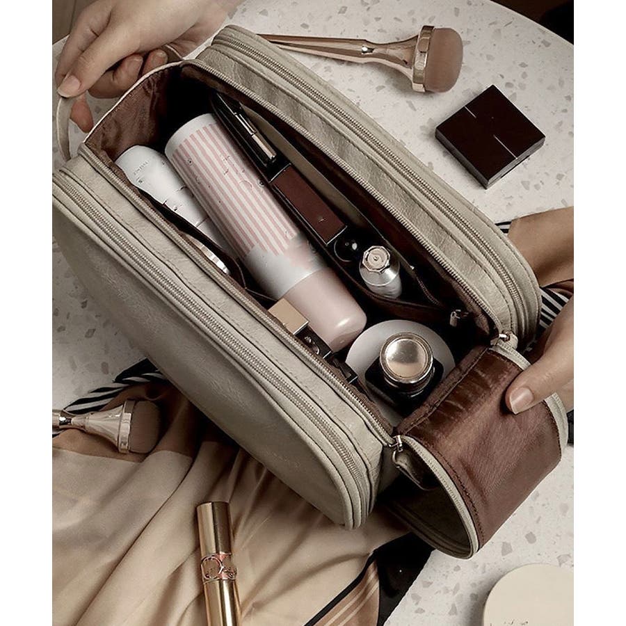 メイク道具一式がたっぷり収納できる持ち運びトラベルコスメポーチ