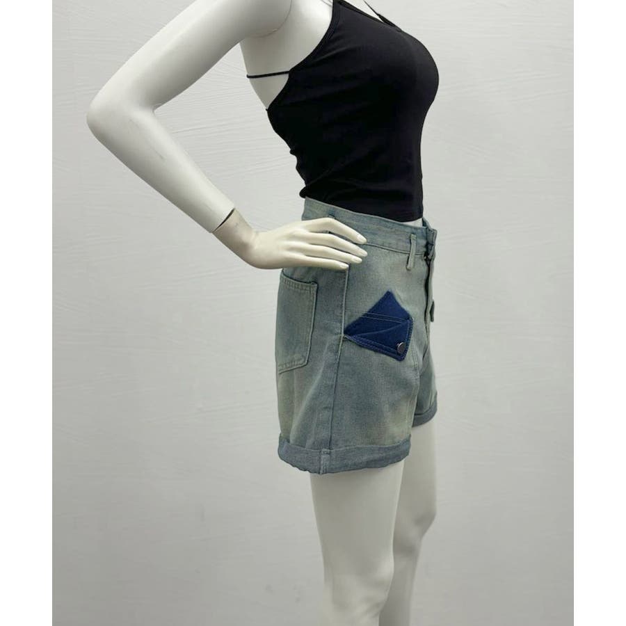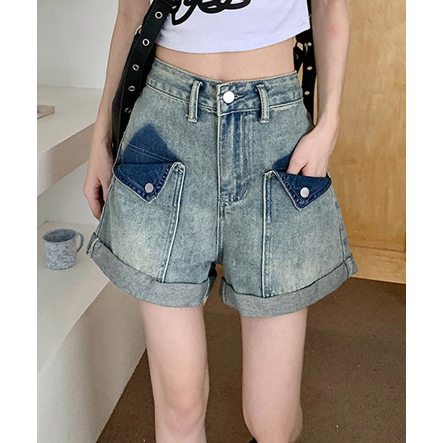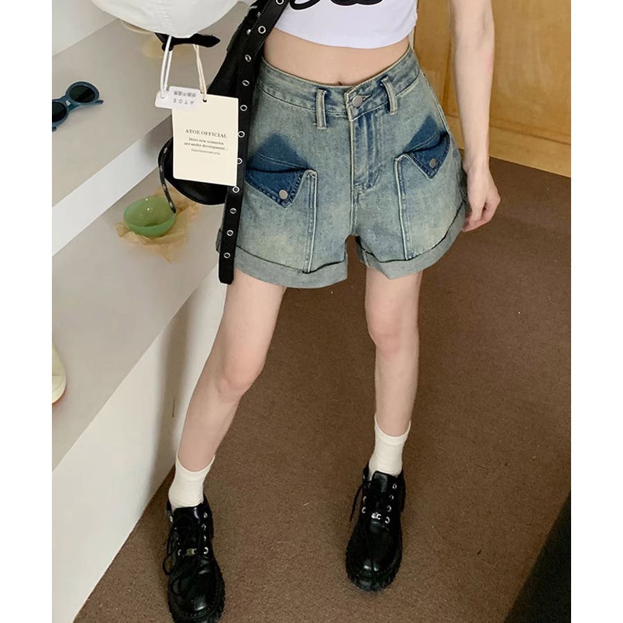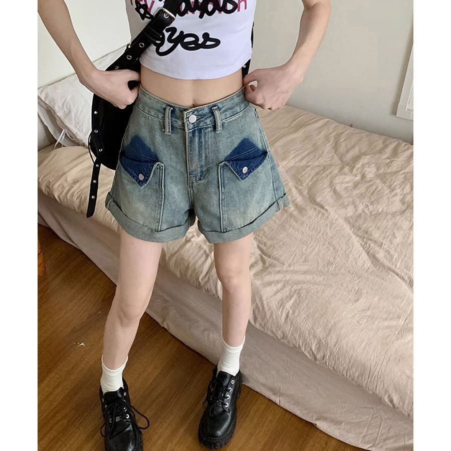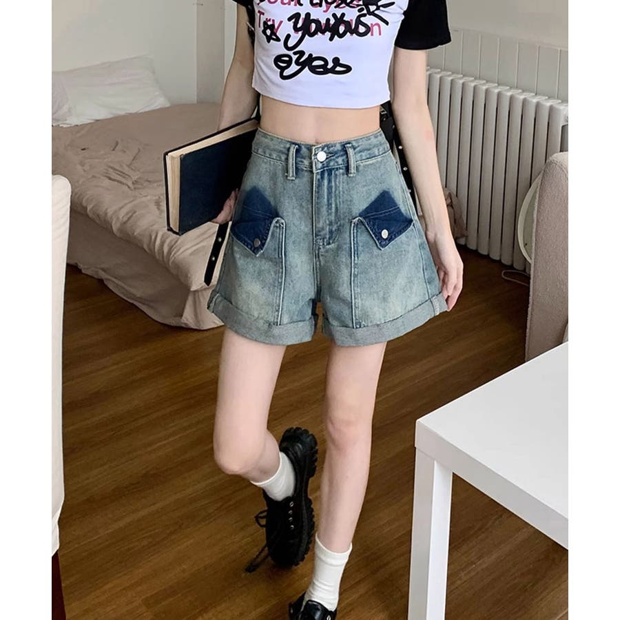 ロールアップ デニムショートパンツ 美脚