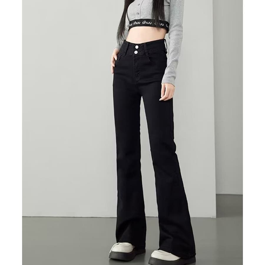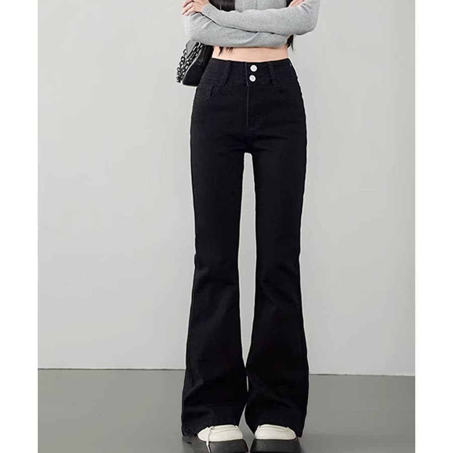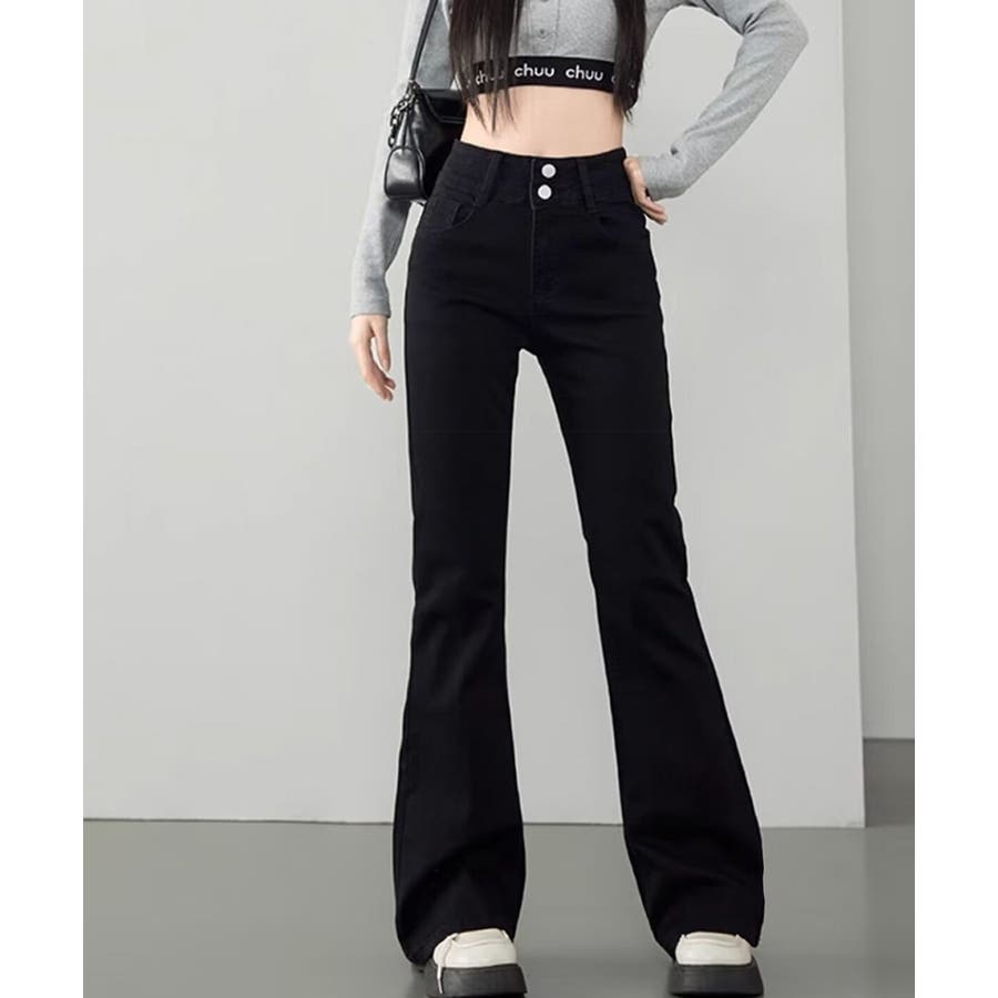 細見えロングパンツ タイトデニム 無地 美尻脚長ジーパン