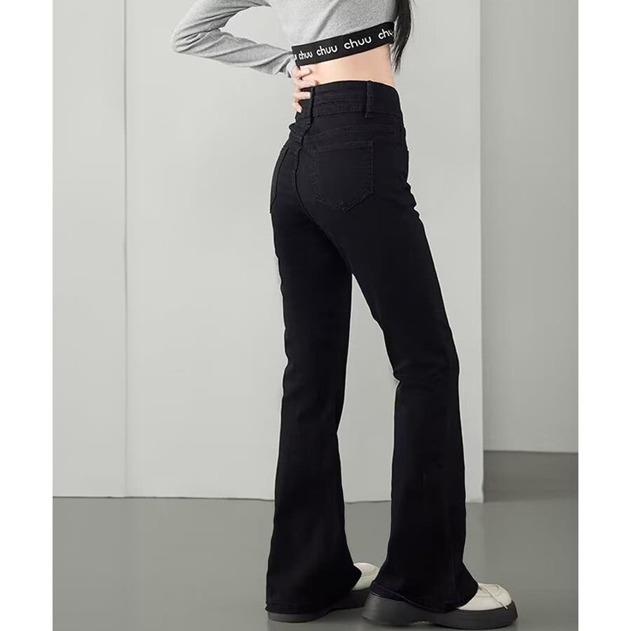 ウエストから膝まではタイトにフィットし、膝から裾にかけて徐々に広がるセミフレアデニムパンツです。