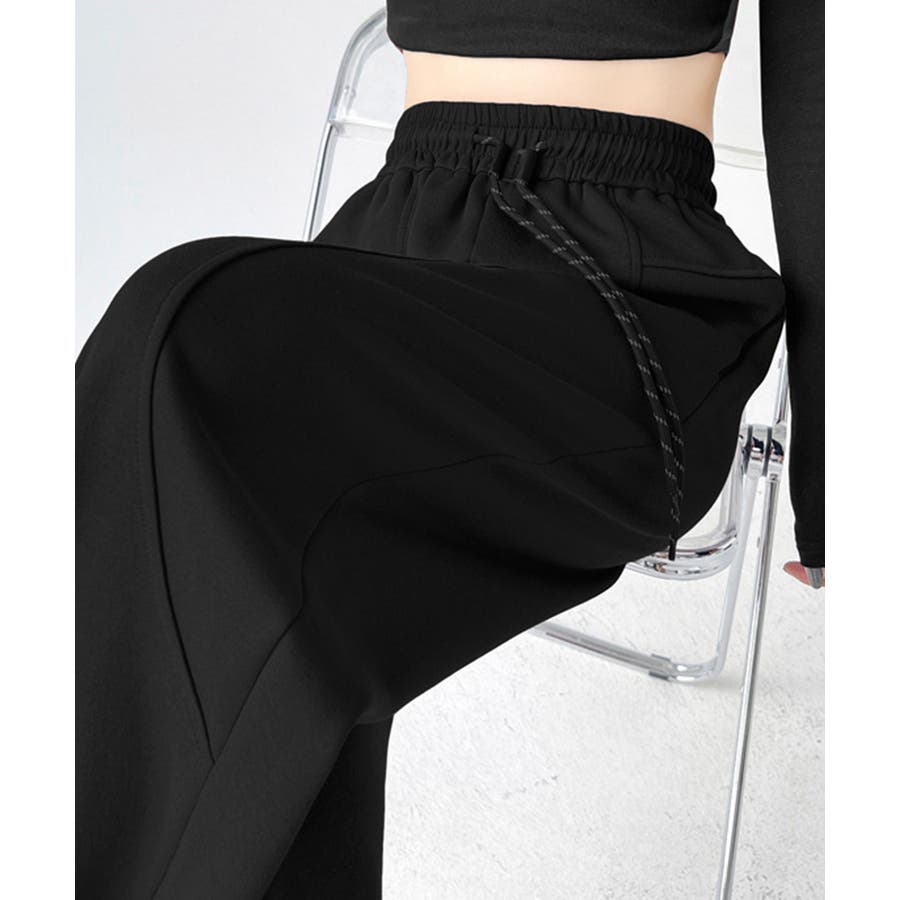 脚長見せ ボトムス 無地パンツ 細見え ストレートパンツ黒