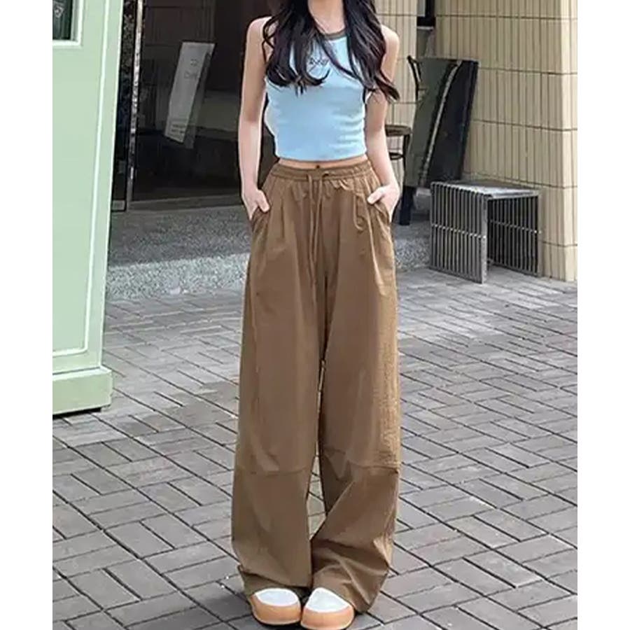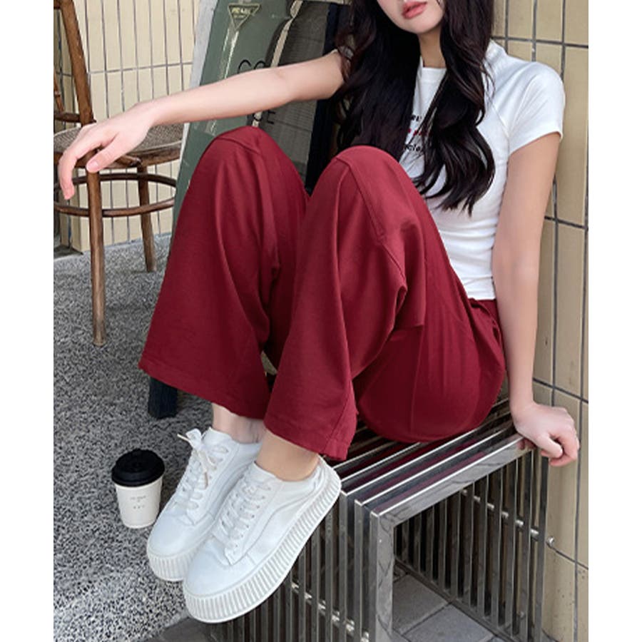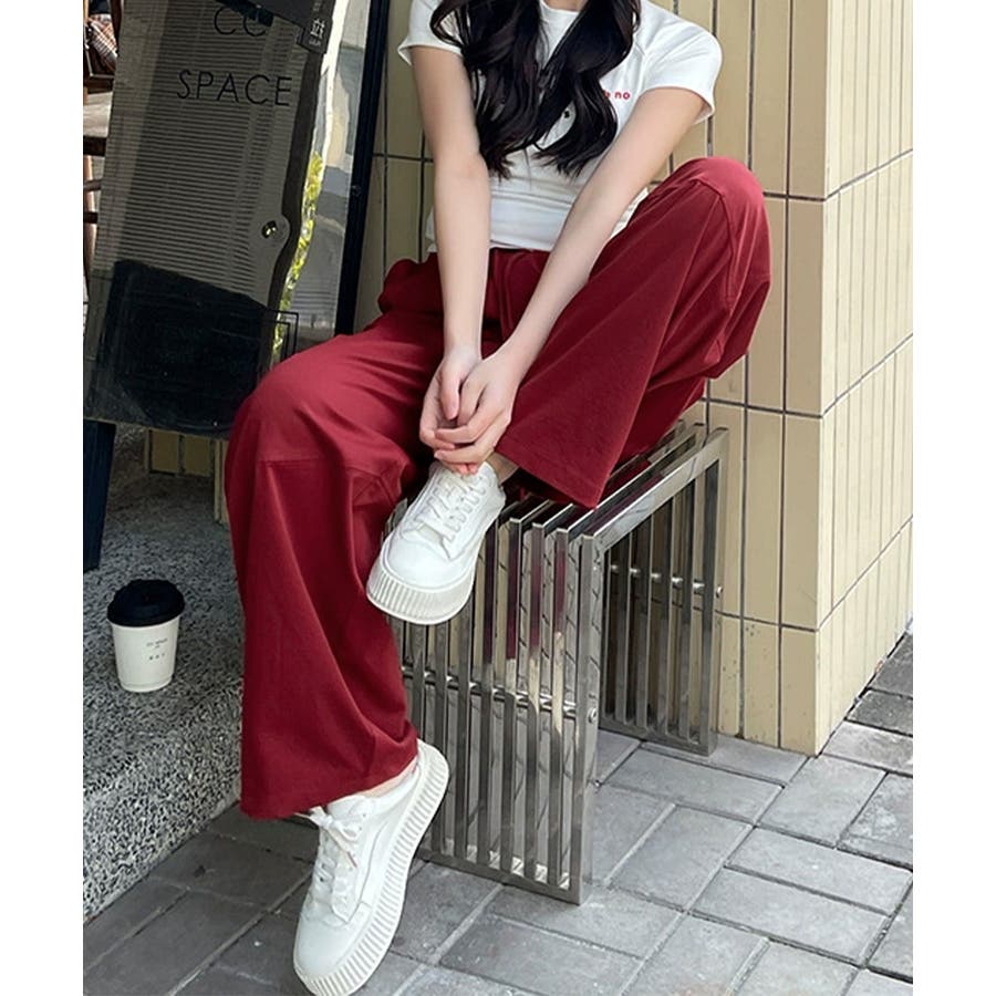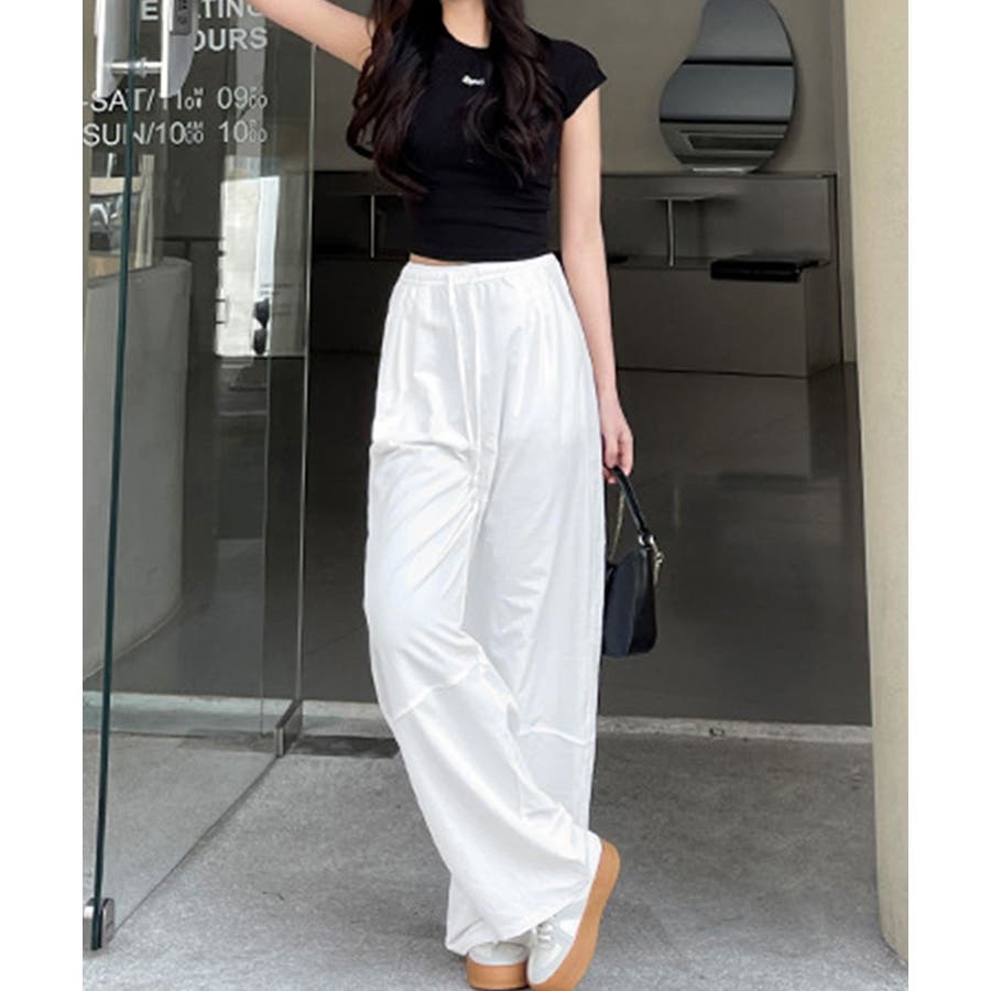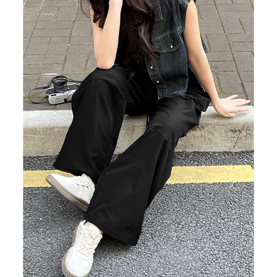 韓国風無地ボトムス 体型カバー長ズボン 脚長見せ パンツ黒
