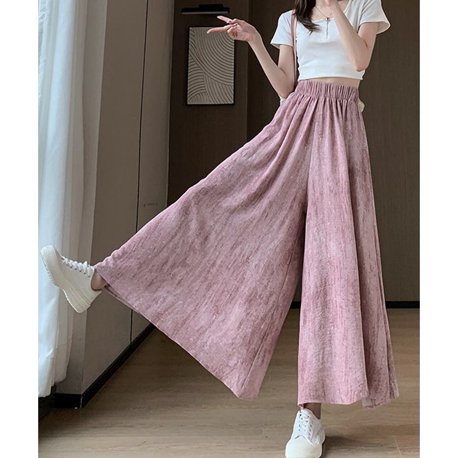 トレンド感あふれるタイダイ柄のワイドガウチョパンツ