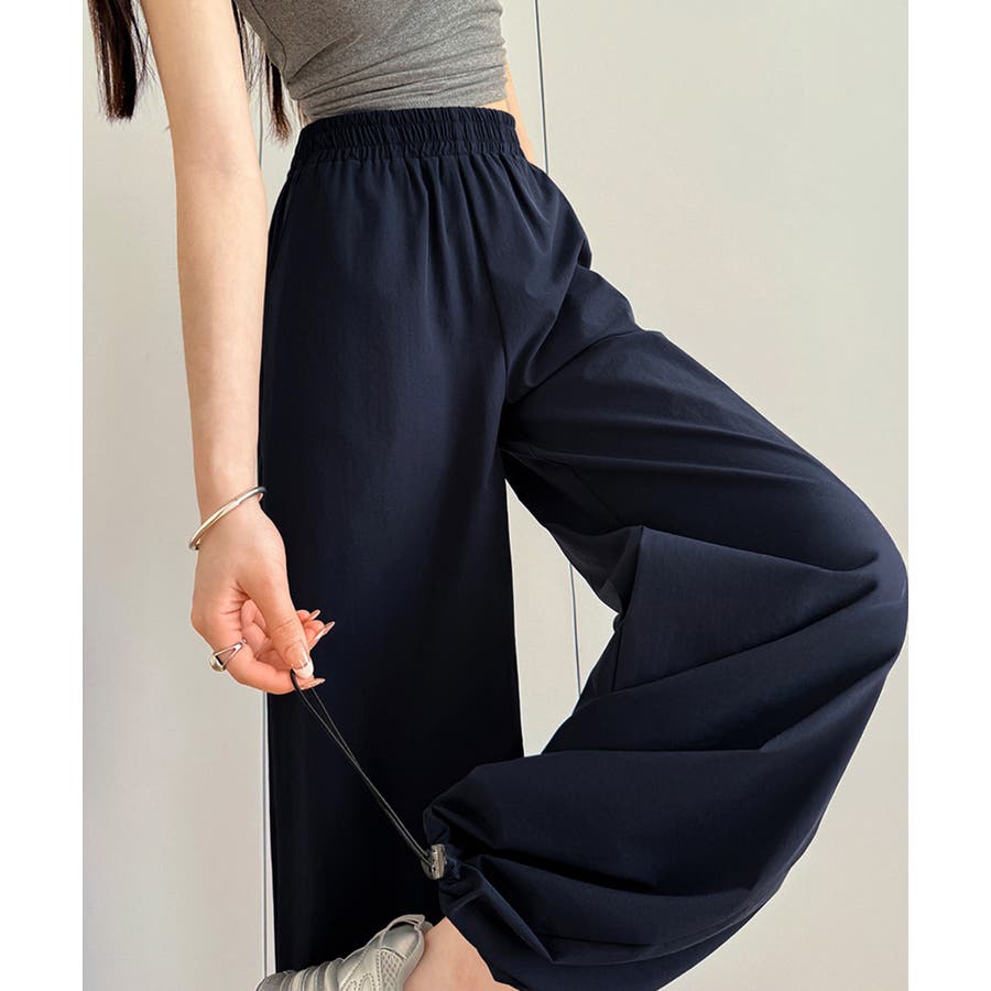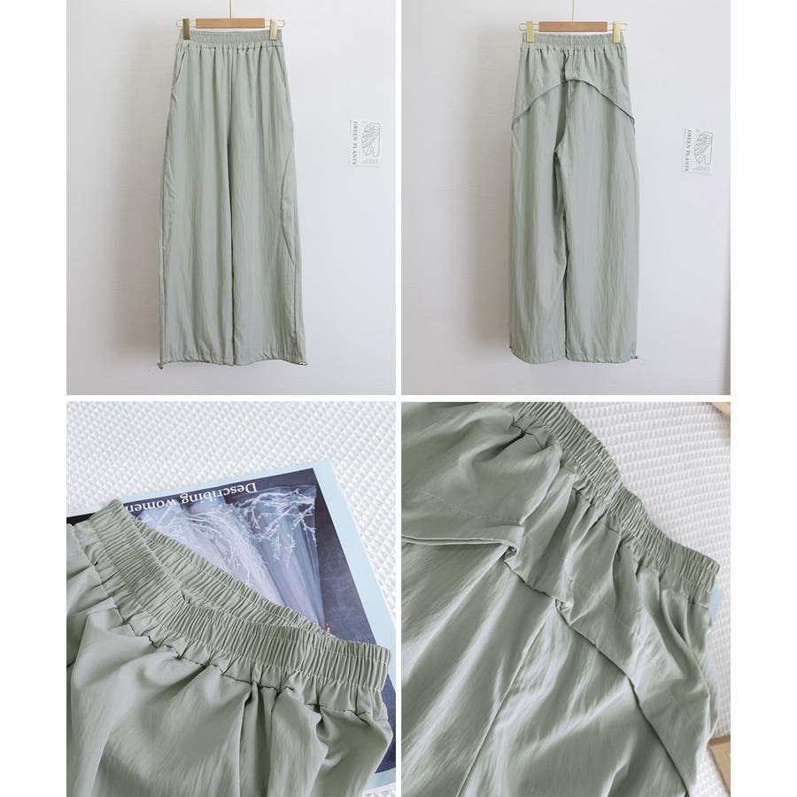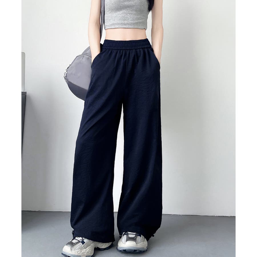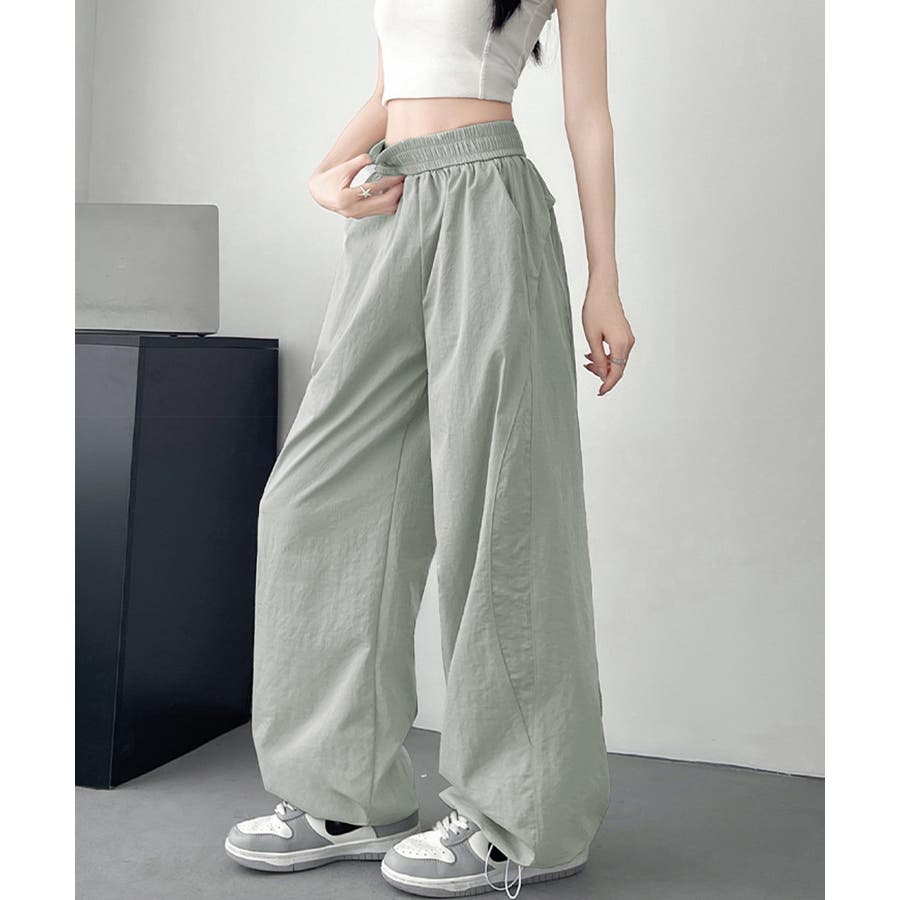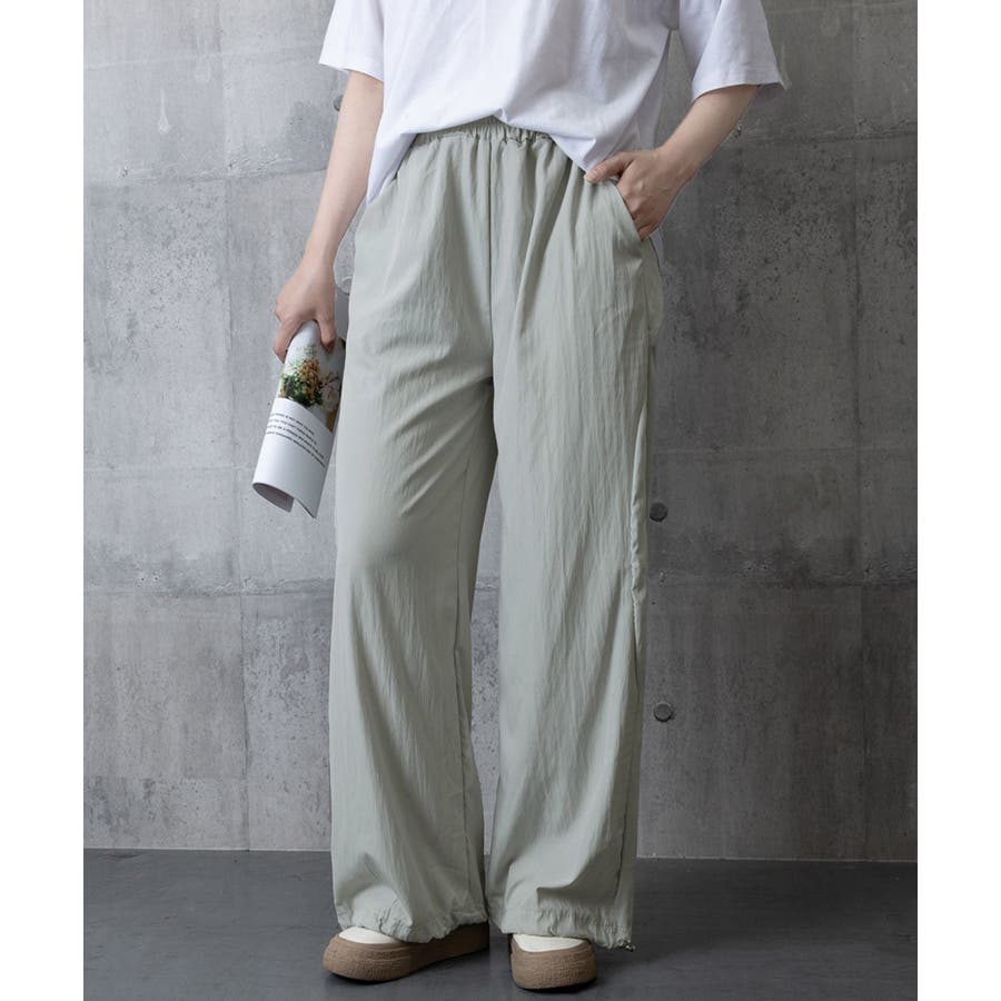 軽やかな穿き心地が魅力の薄手ワイドパンツ。
