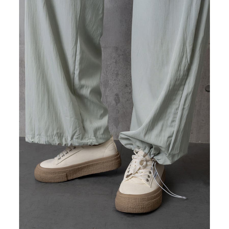 裾を絞れば丸みのあるシルエットに、伸ばせばすっきりとしたストレートに穿ける2WAY仕様。