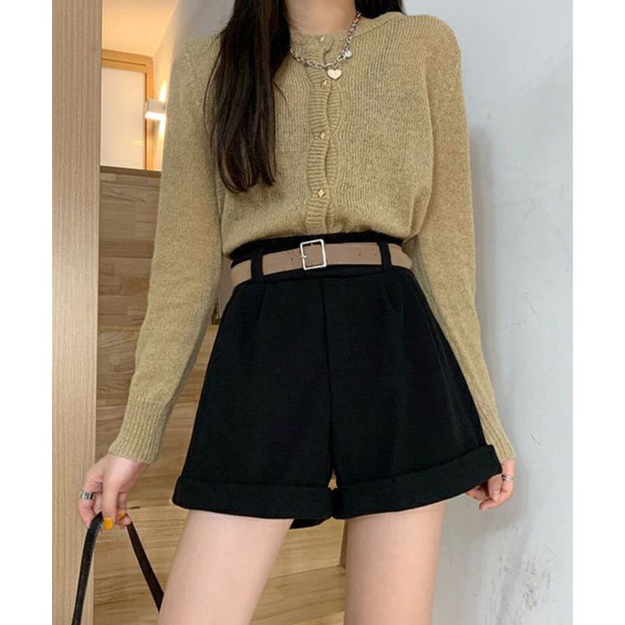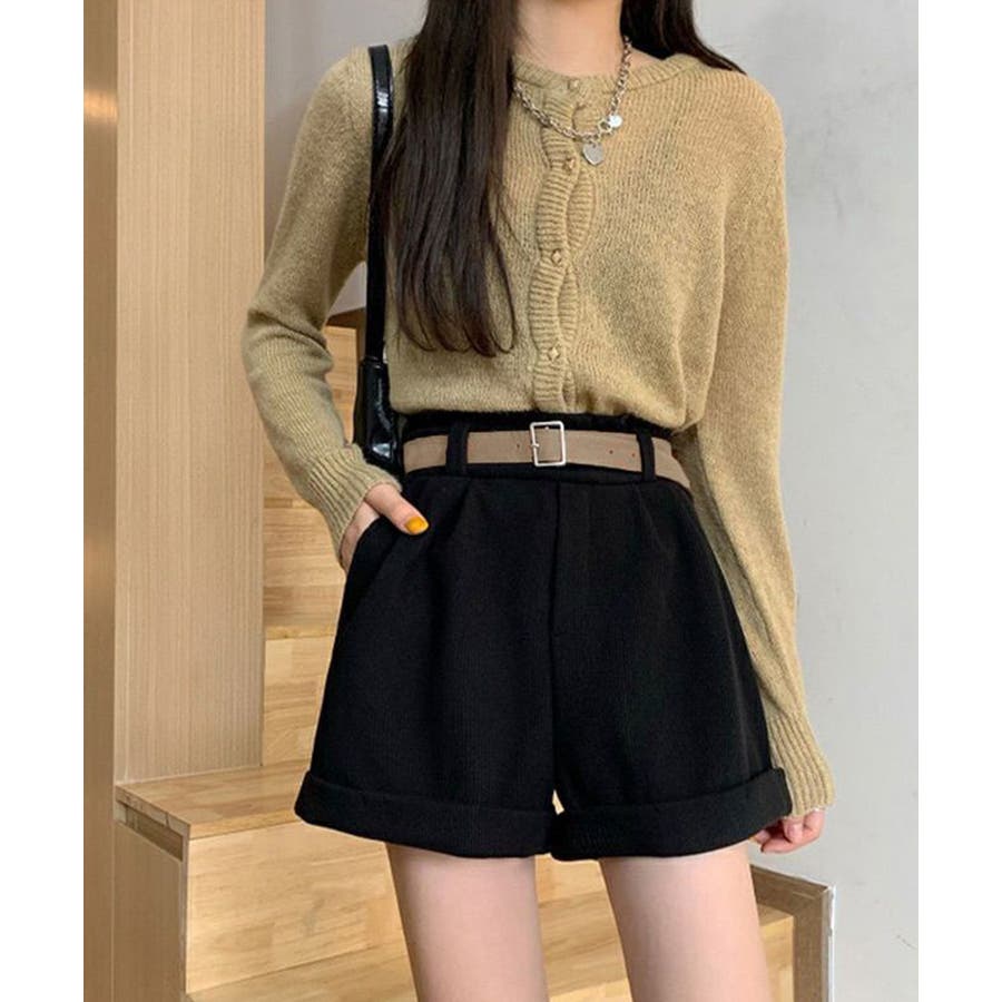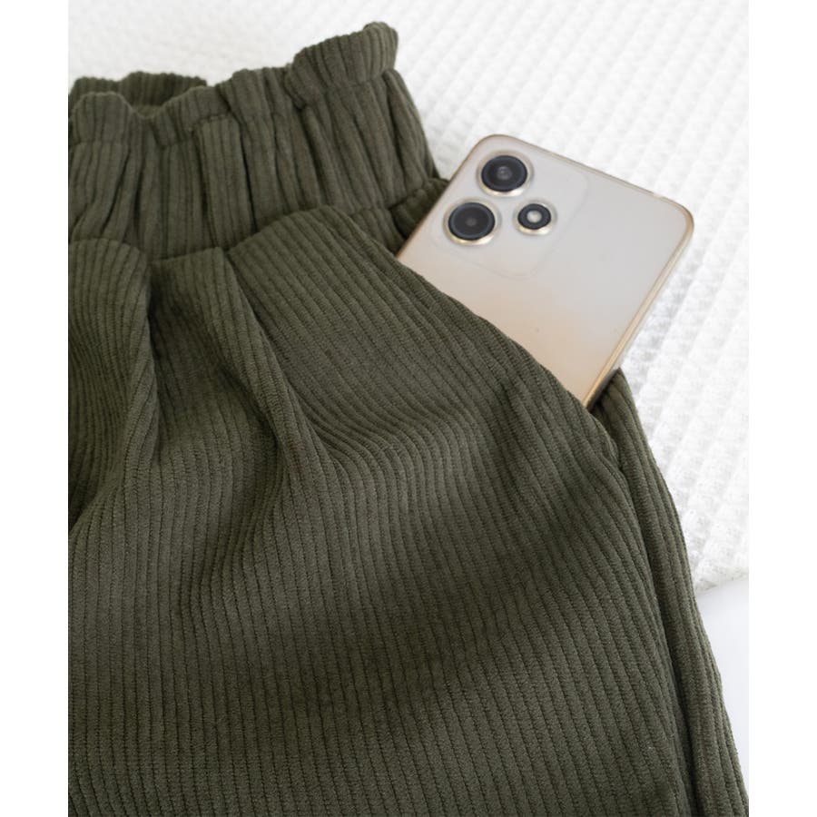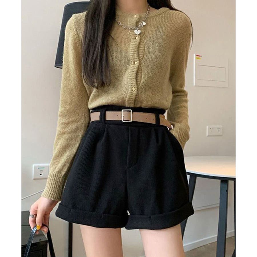 ハイウエストデザインとAラインシルエットで、脚長印象とスタイルアップを引き立てるベルト付きコーデュロイショートパンツ。