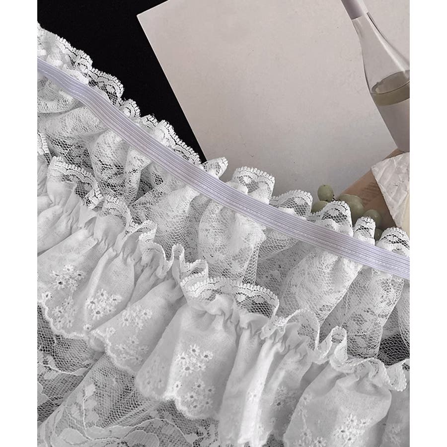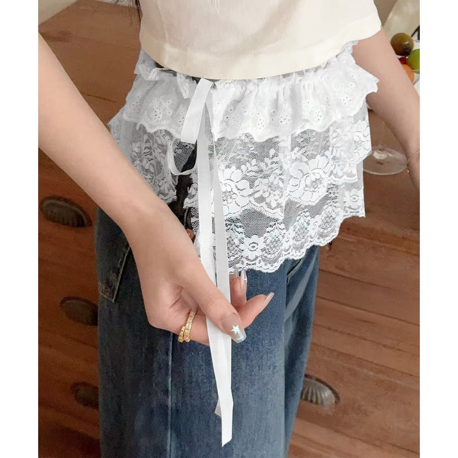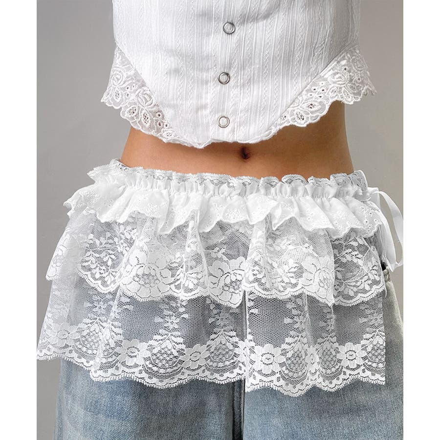 レディース ウエストリボンミニスカート シースルー付け裾 大人可愛い 花柄レーススカート 重ね着 ズボンの上巻きスカート