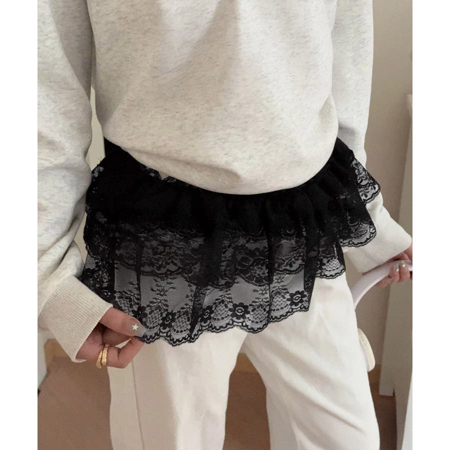 シーズンレス小物黒 フェミニン付け裾白 フリルヒップカバー