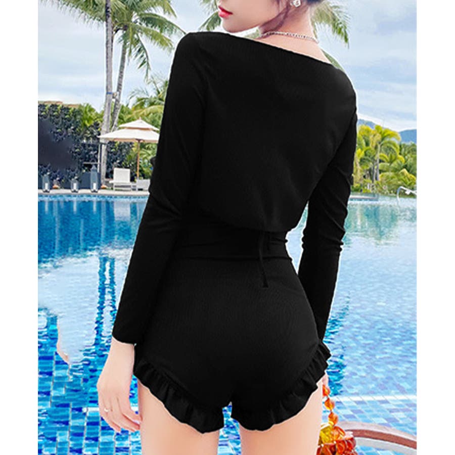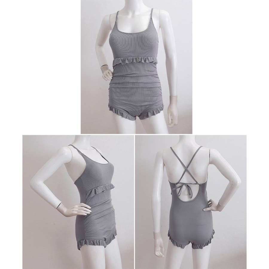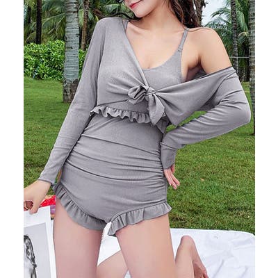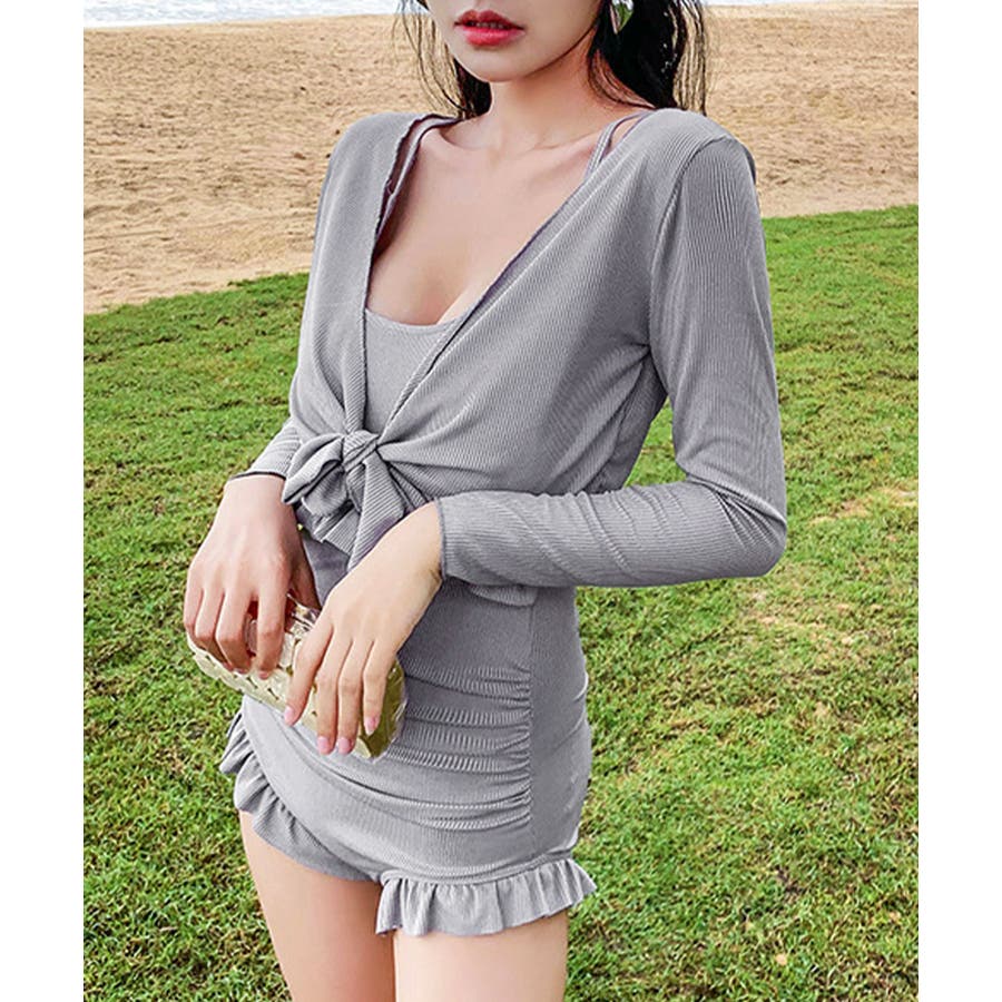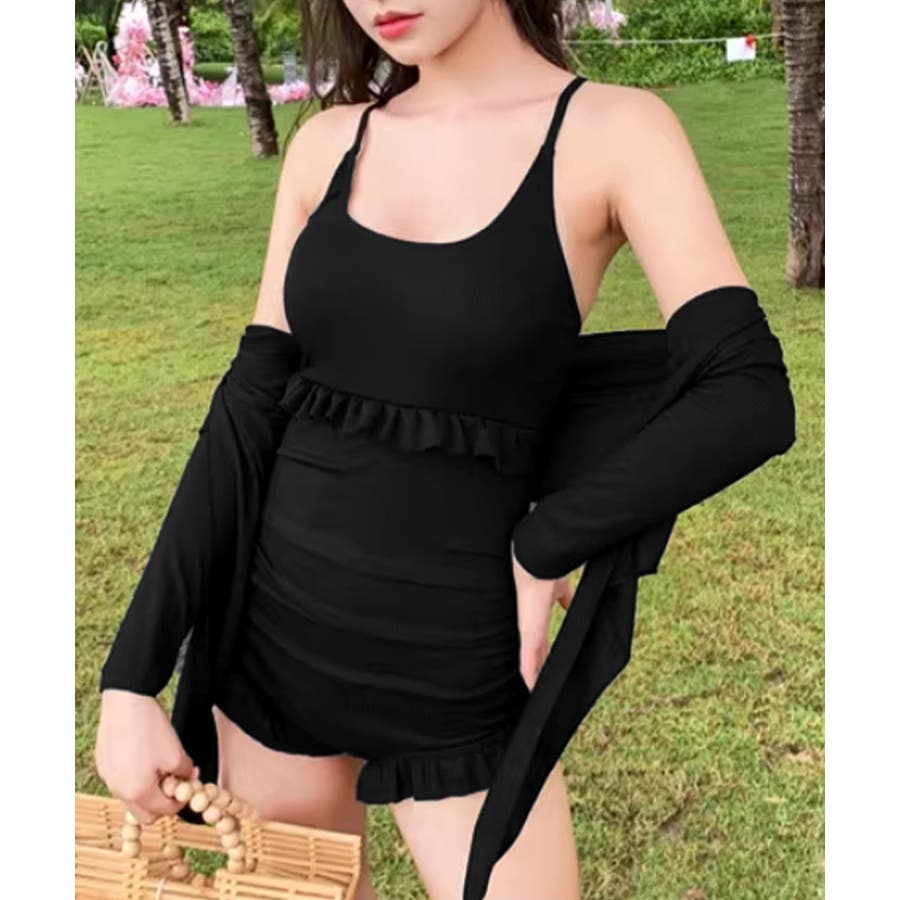 フリル付きスイムウェア クロスバックワンピース水着 カーディガン付き