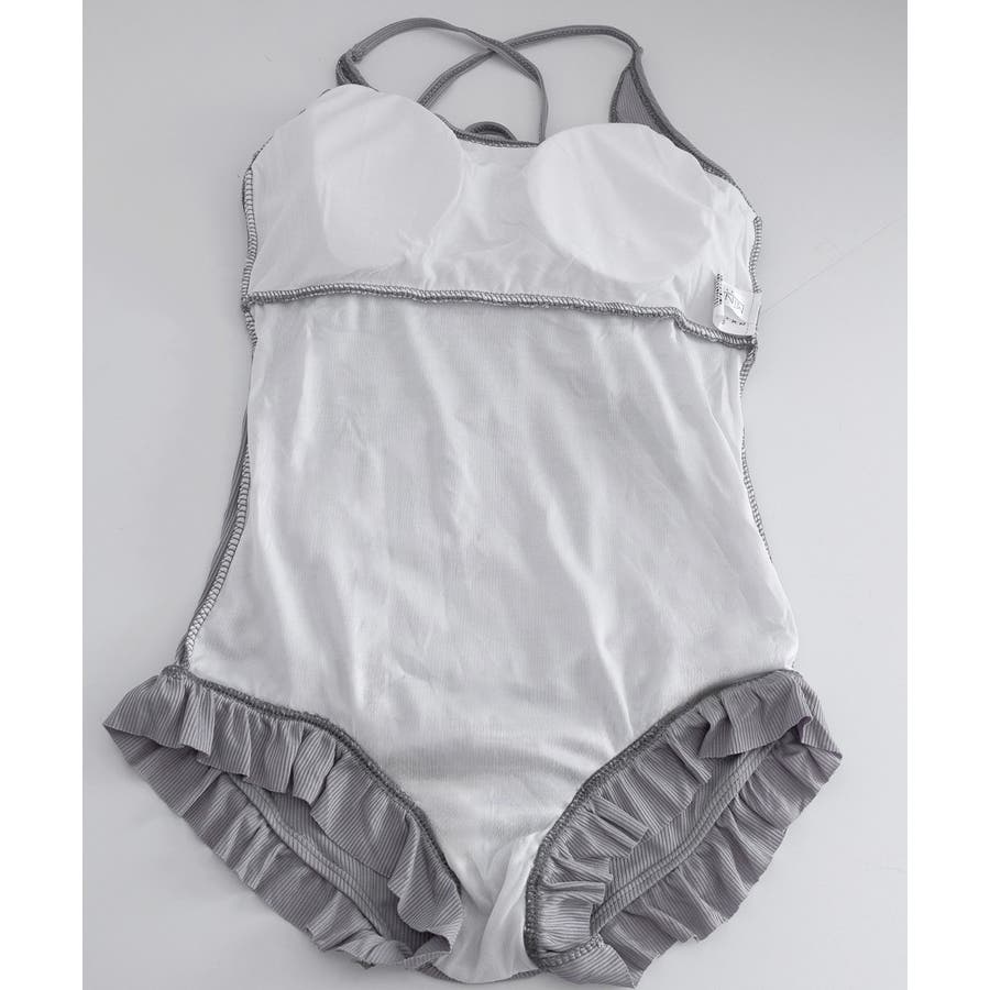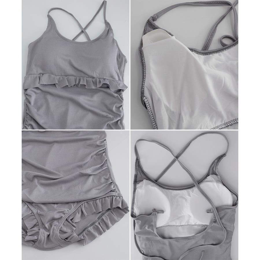 ワンピース水着は肌に心地よくフィットし、可愛らしいフリルがアクセント。