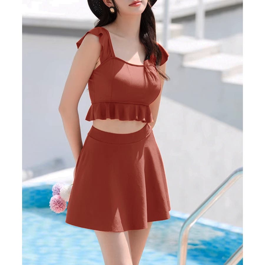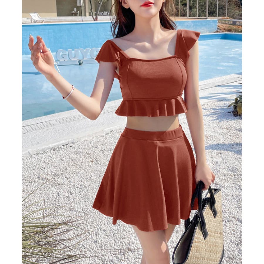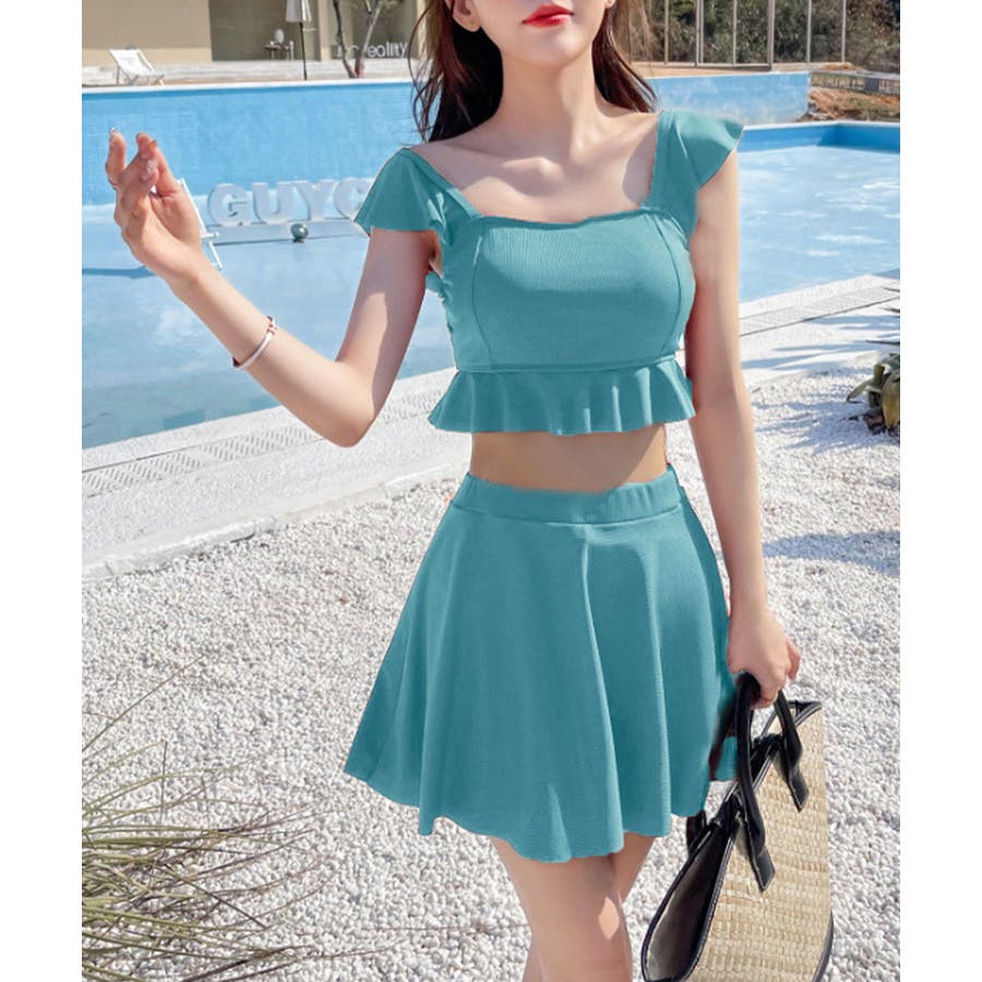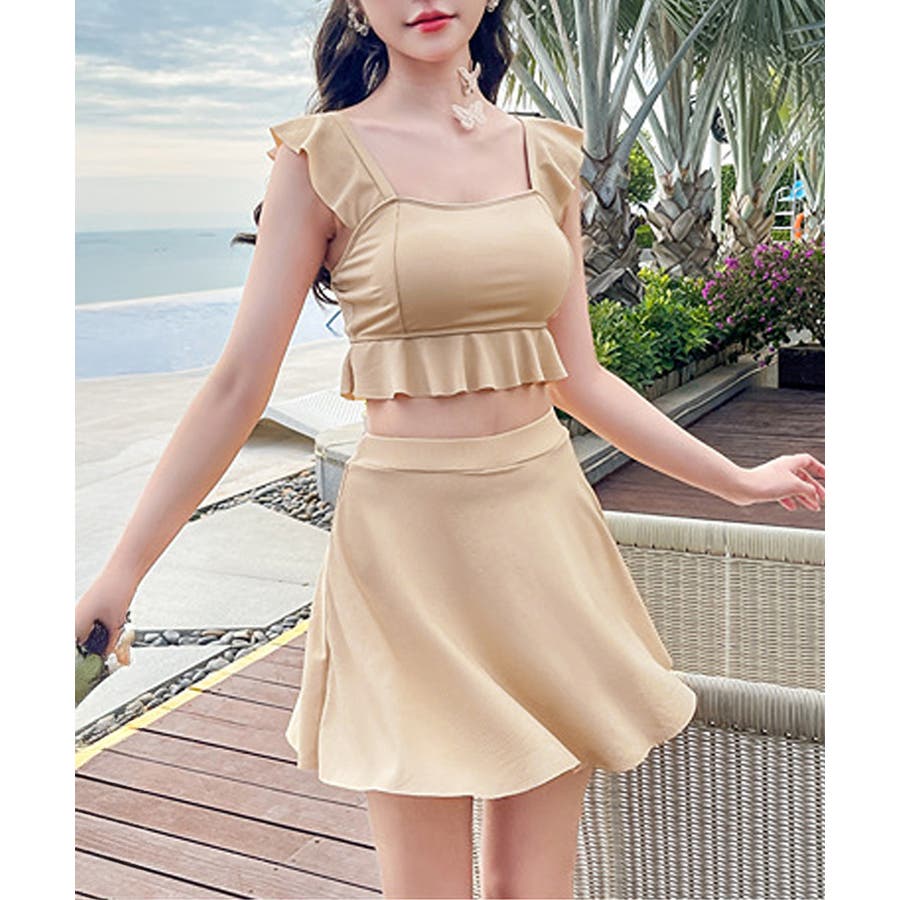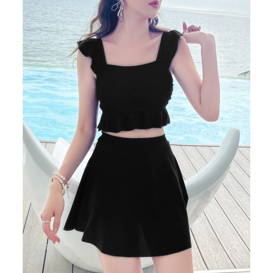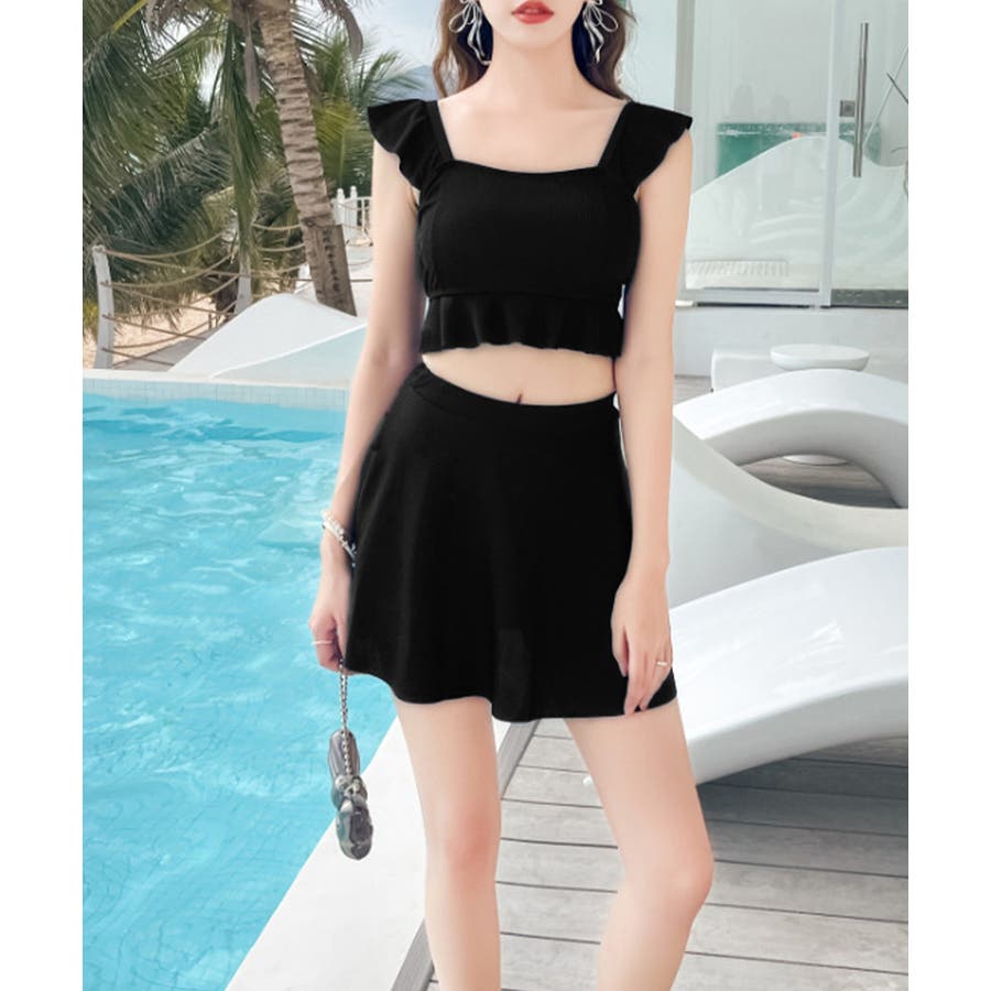 露出控えめ水着無地 夏海プールみずぎ黒 海水浴ビスチェ水着