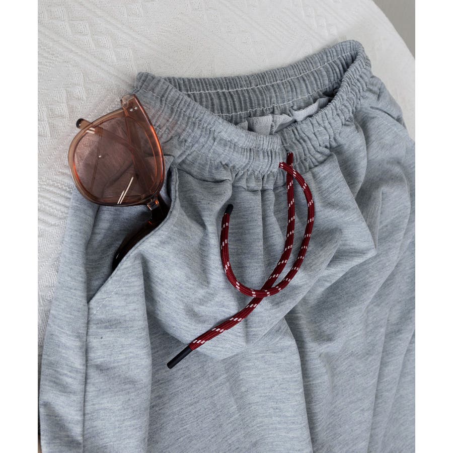 ウエストはゴム仕様で、ドローストリング付きのためフィット感を調節可能