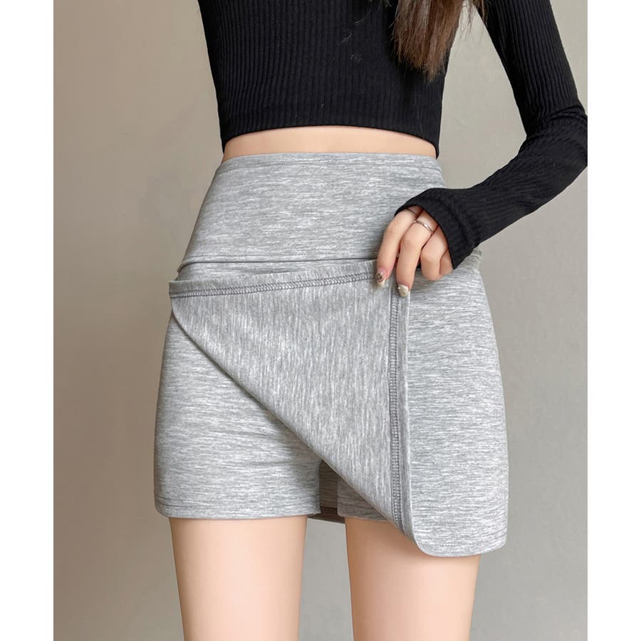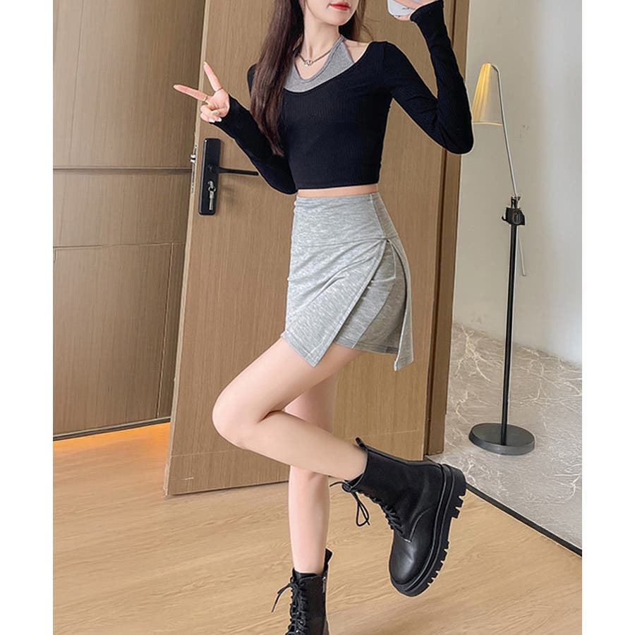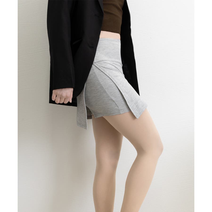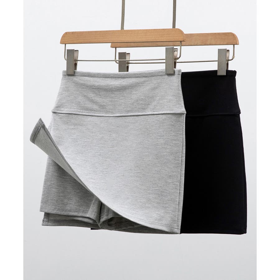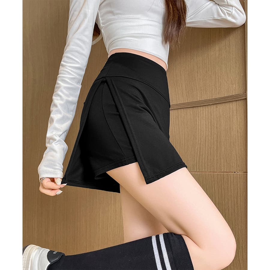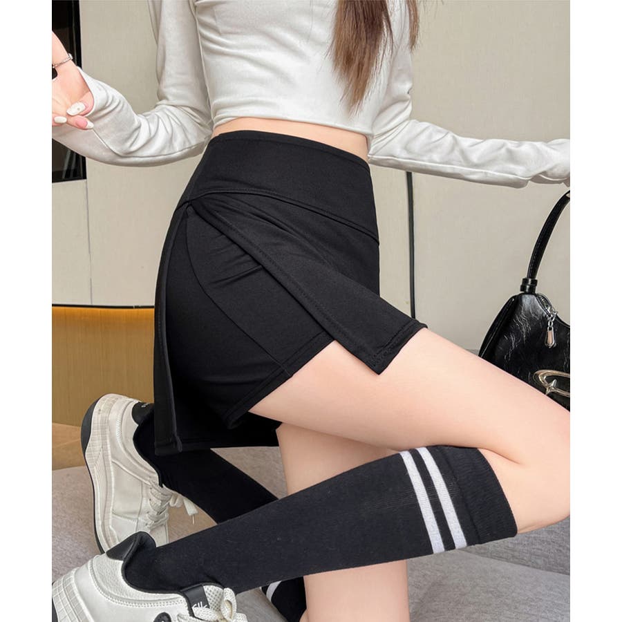 ショート丈ボトムス セクシースカパン黒 細見えスカート無地