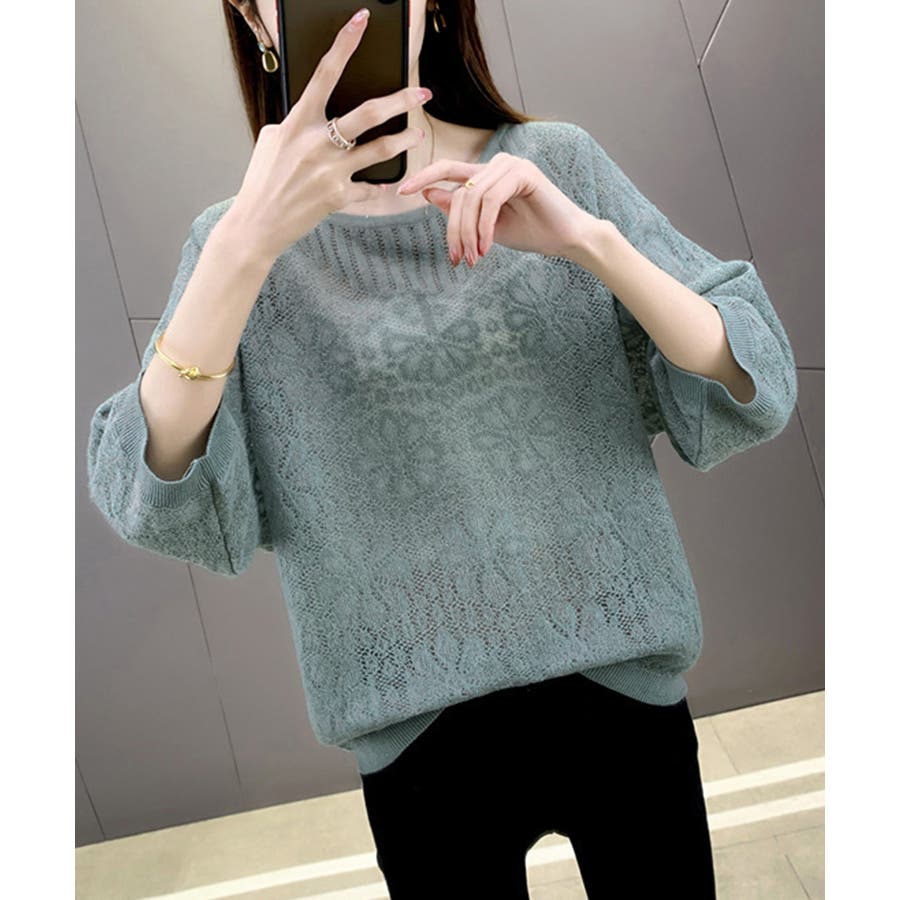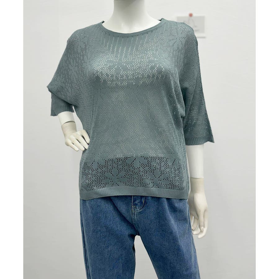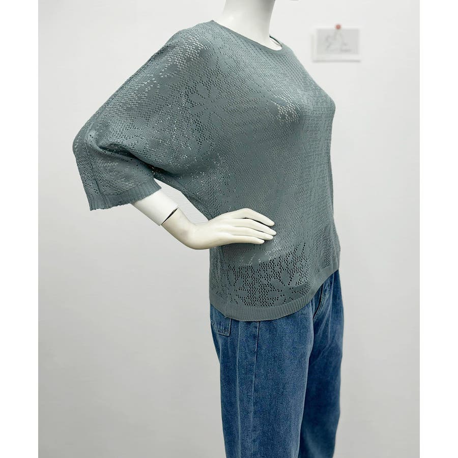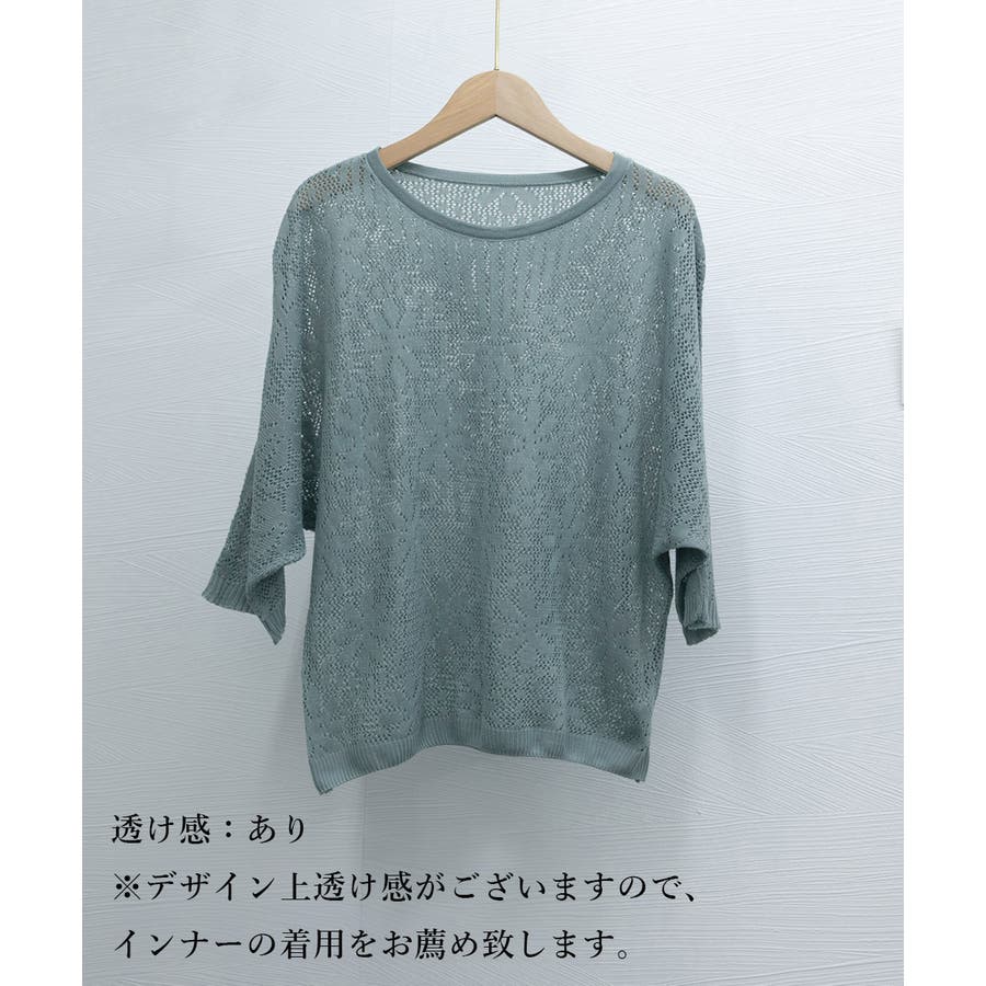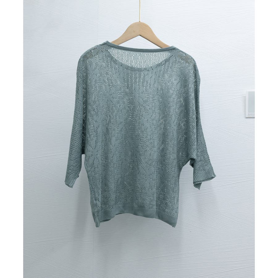 程よい透かし編みが大人の雰囲気を漂わせるドルマンサマーニットトップス