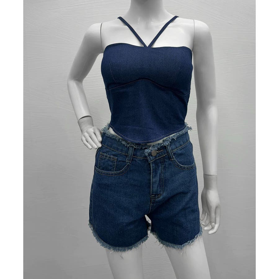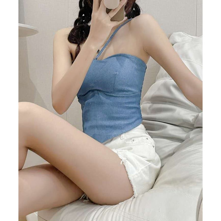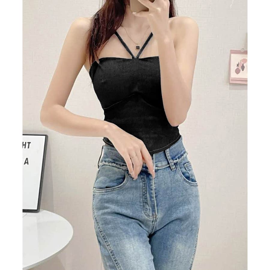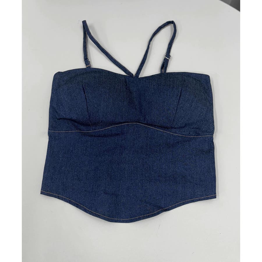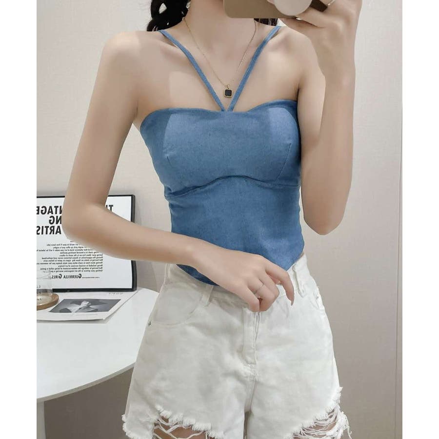 胸元と後ろ姿を綺麗に魅せてくれるカップ付きデニム風キャミソール