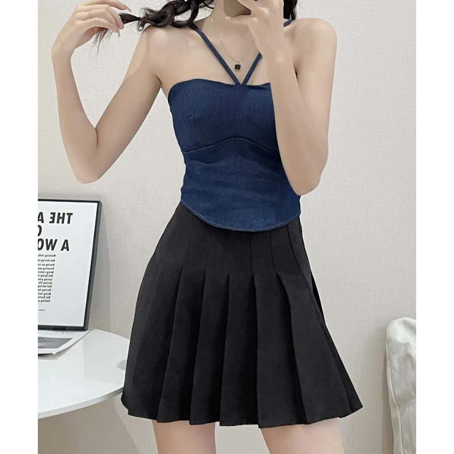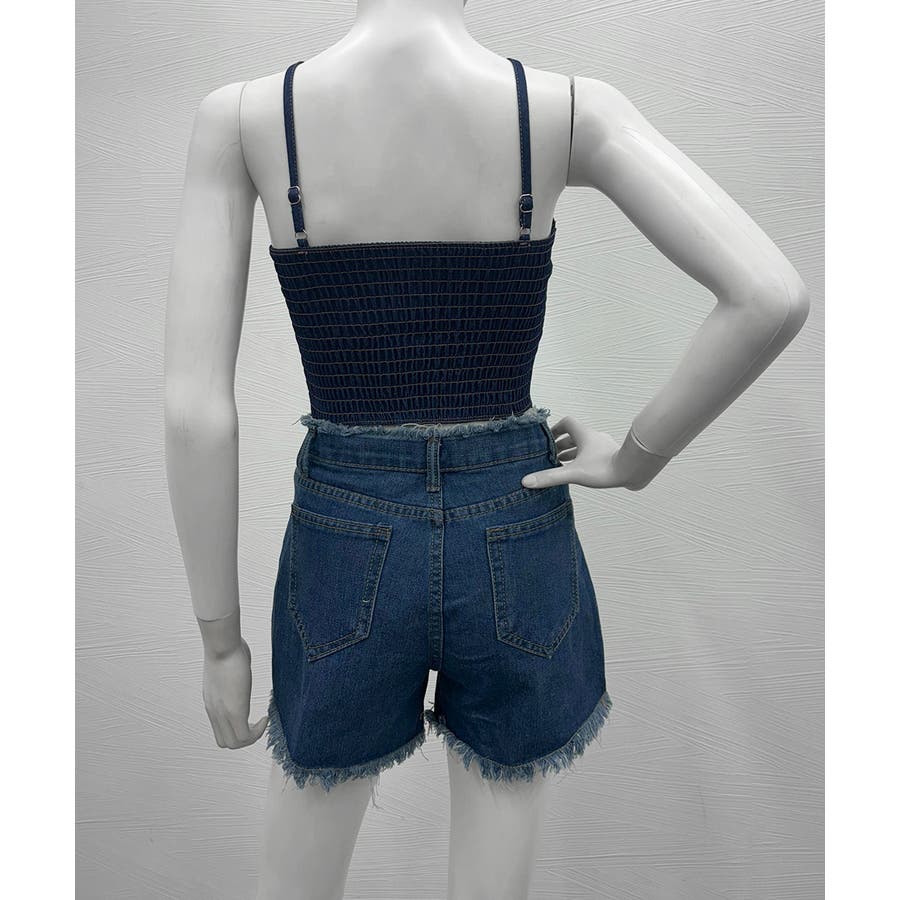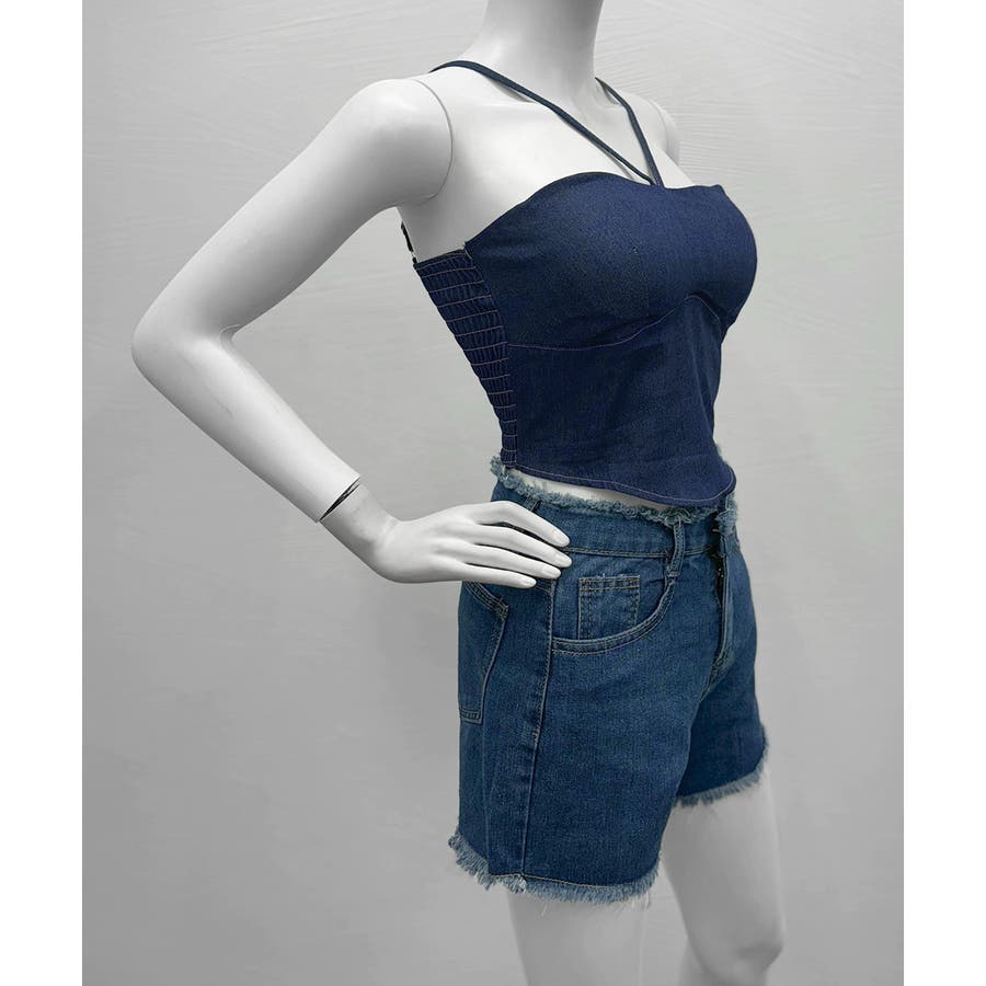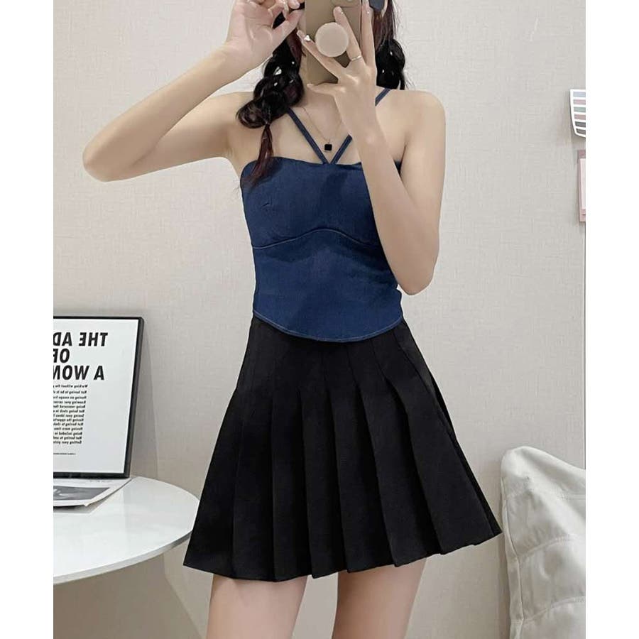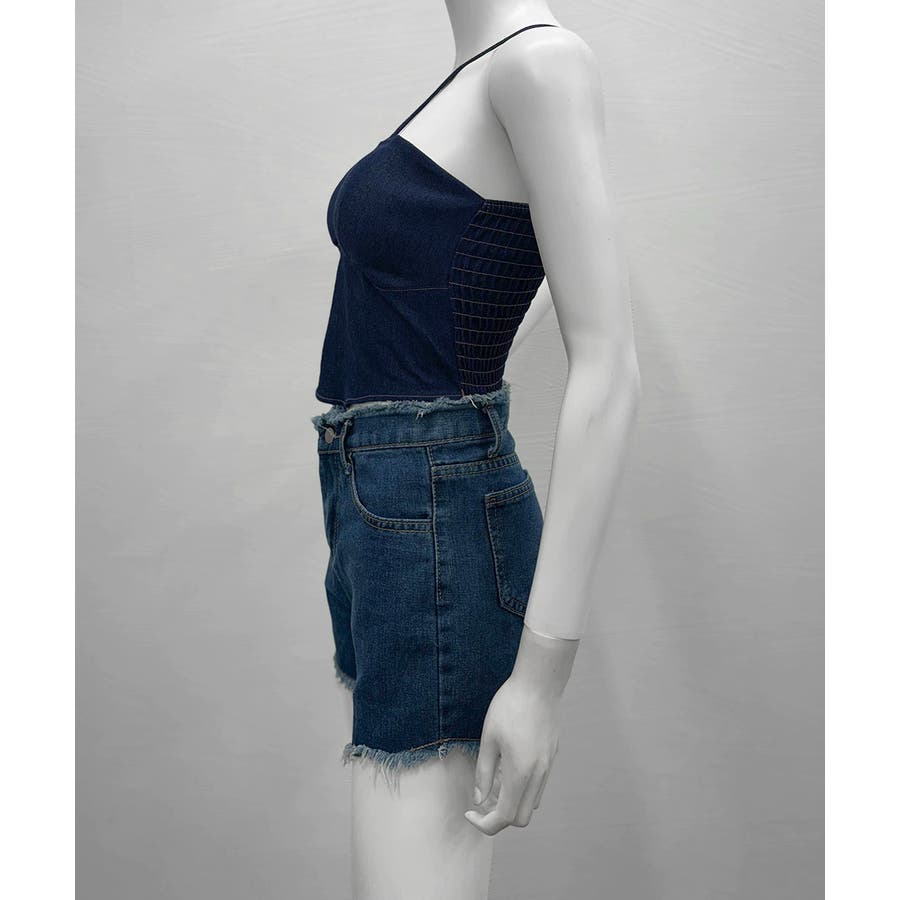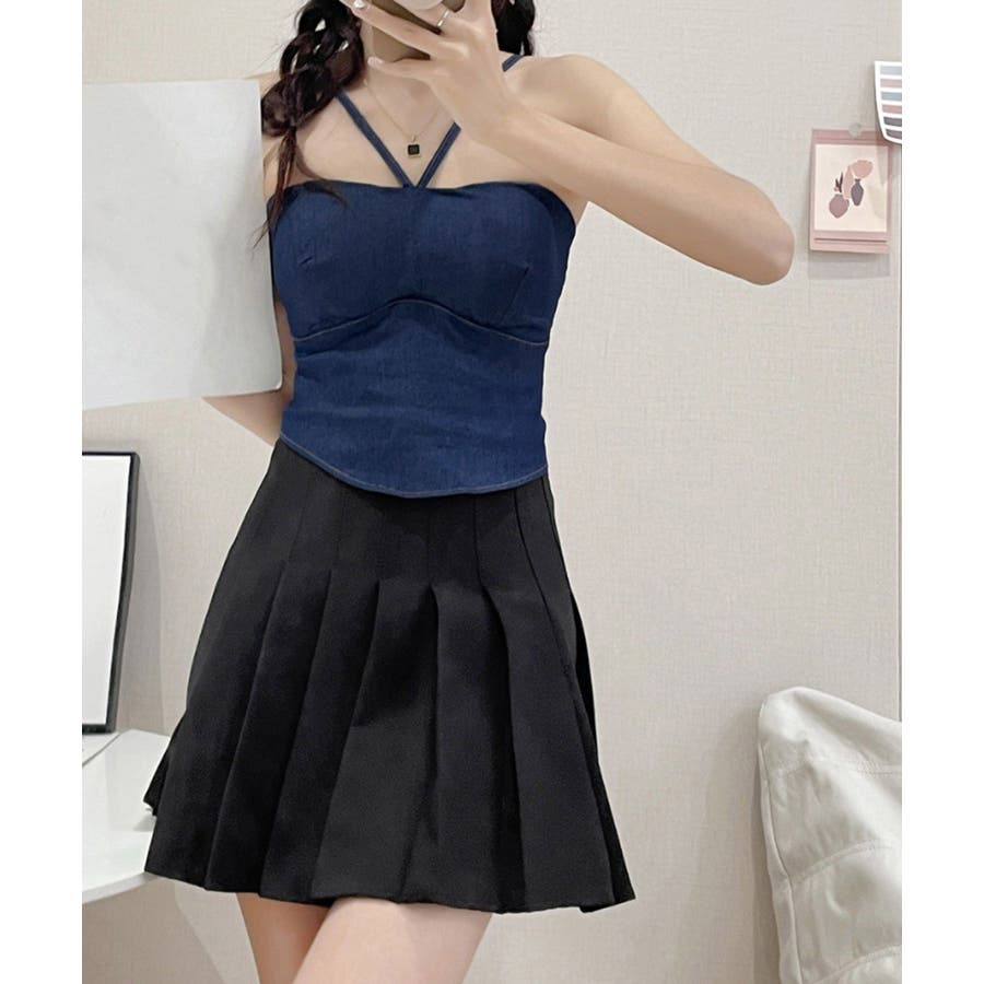 胸元と後ろ姿を綺麗に魅せてくれるカップ付きデニム風キャミソール