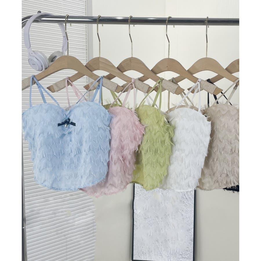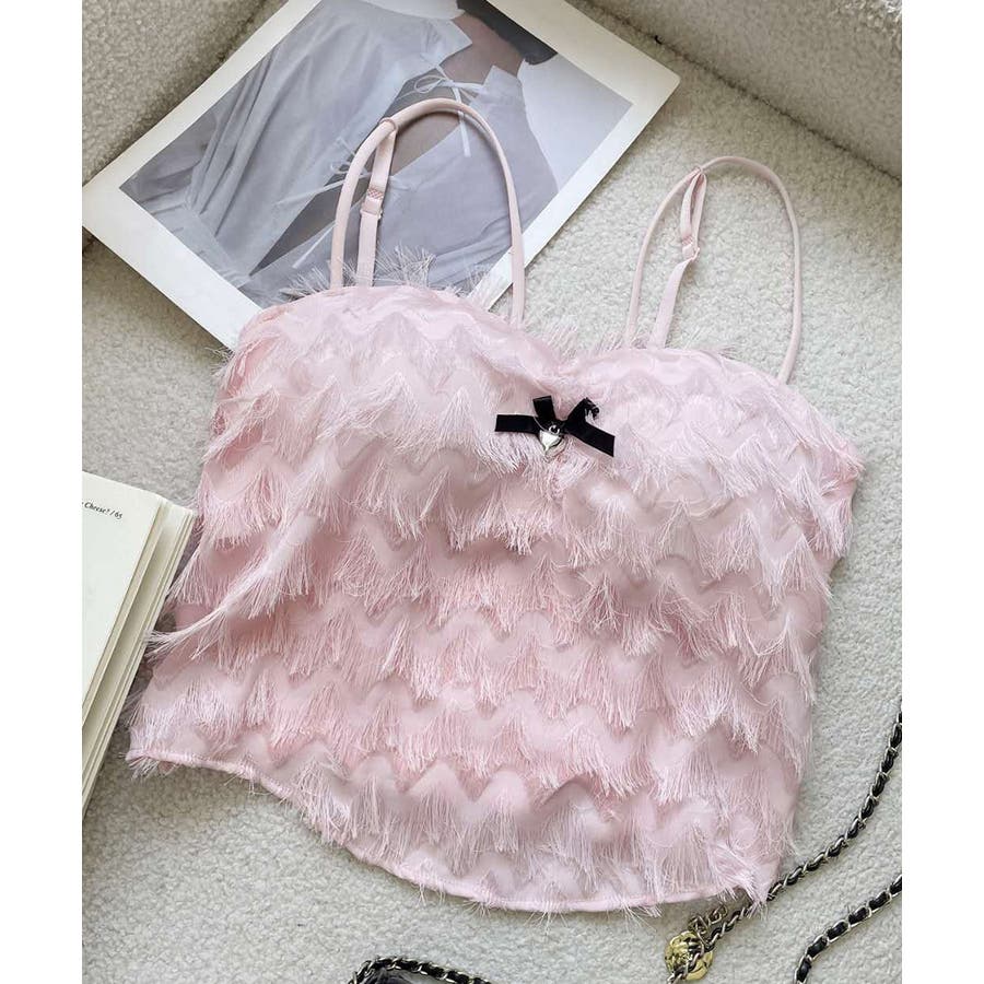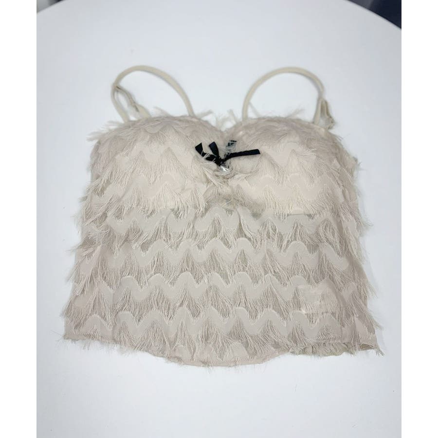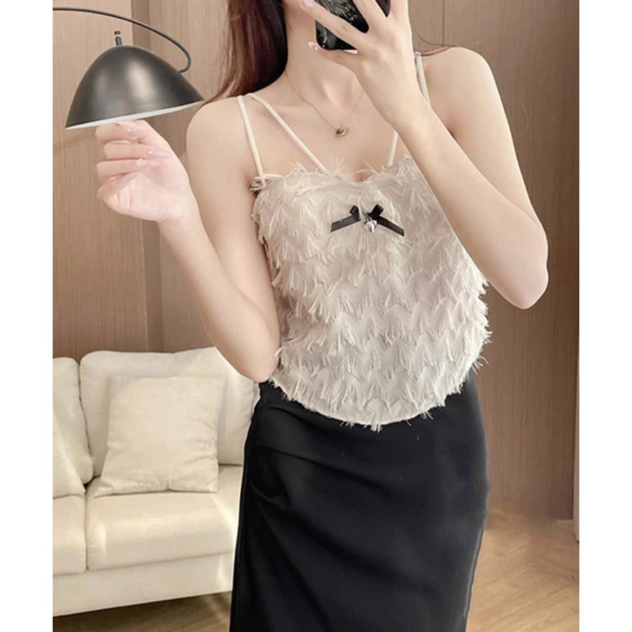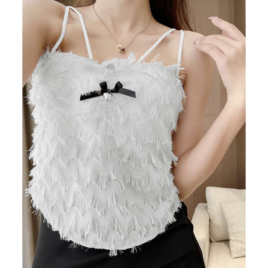 毛足感のあるフリンジが華やかなキャミソール