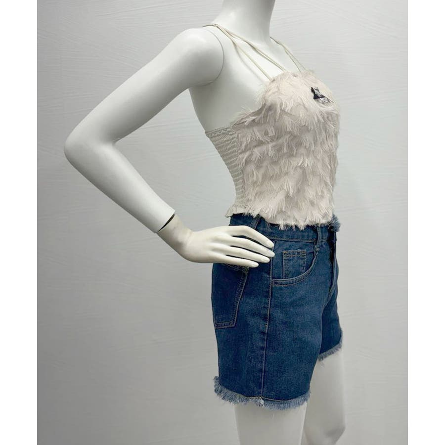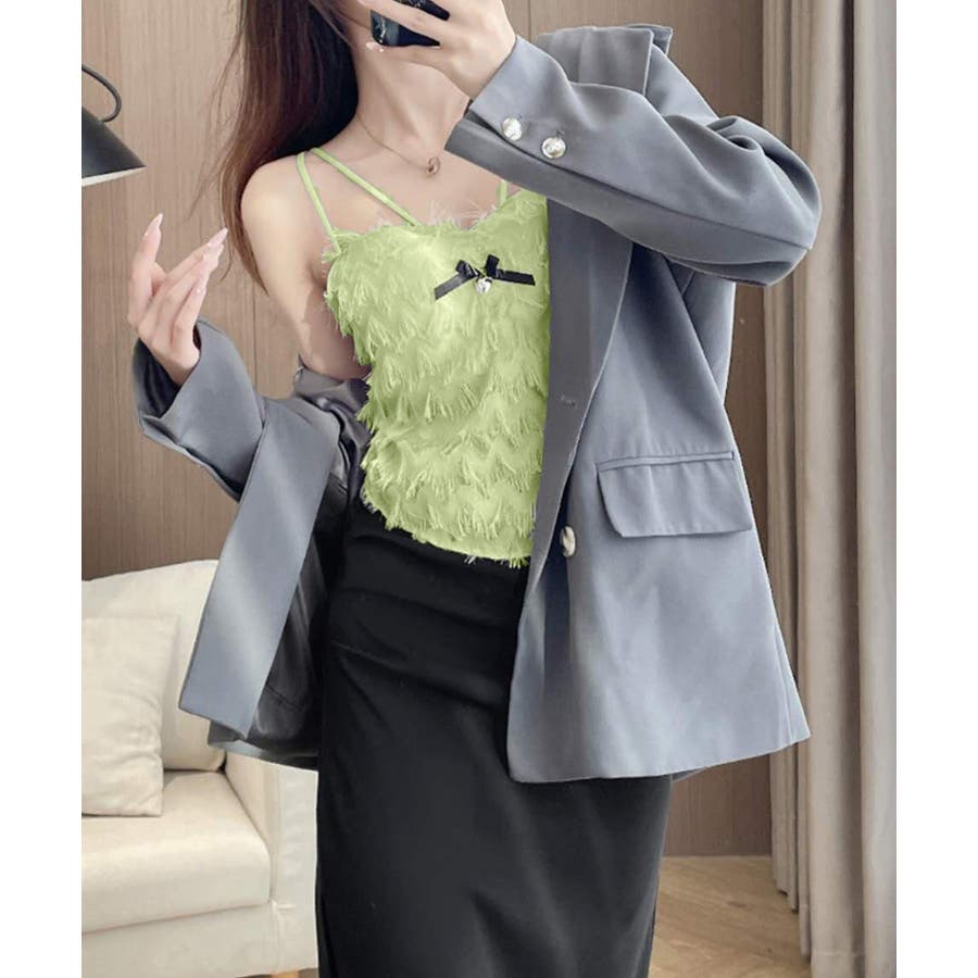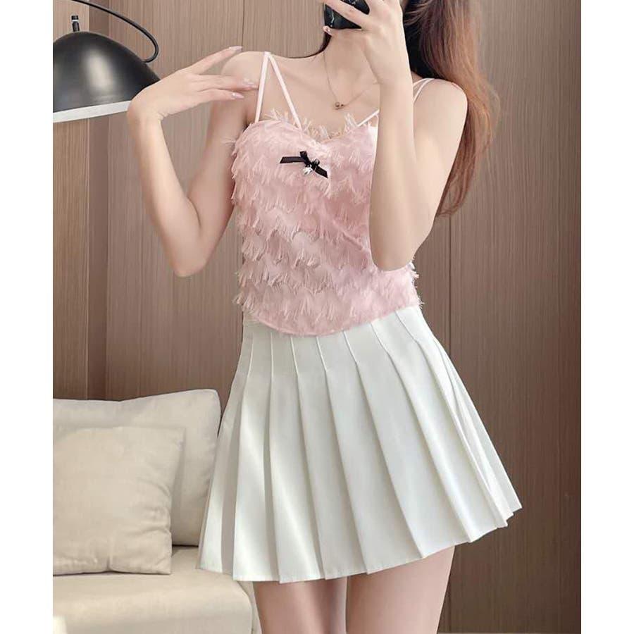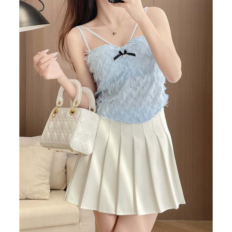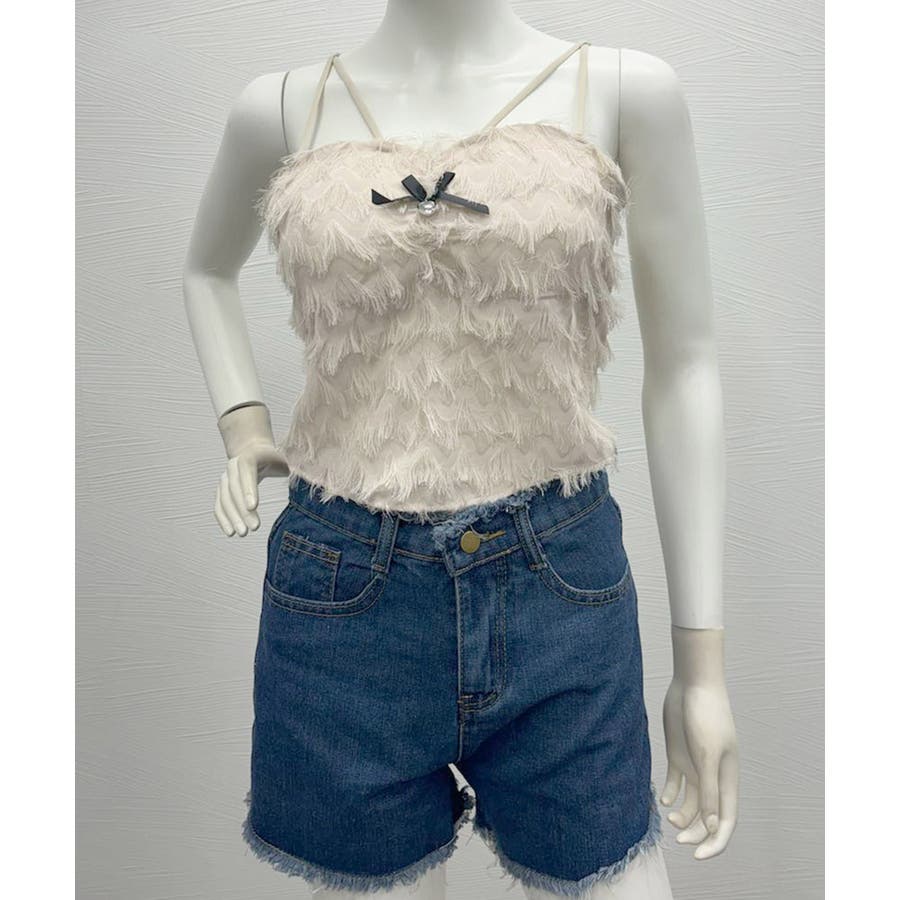 毛足感のあるフリンジが華やかなキャミソール