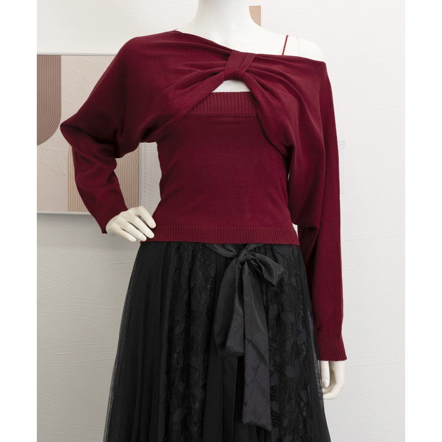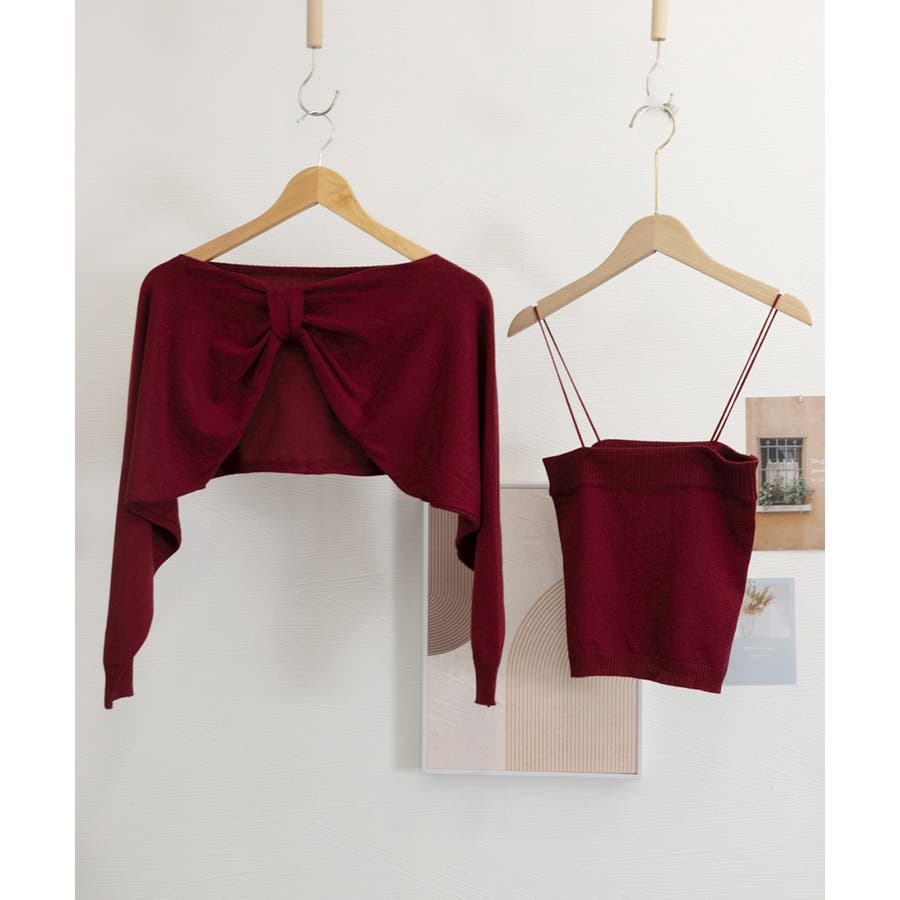 大人可愛いニット秋 無地キャミソール 着やせセットアップ