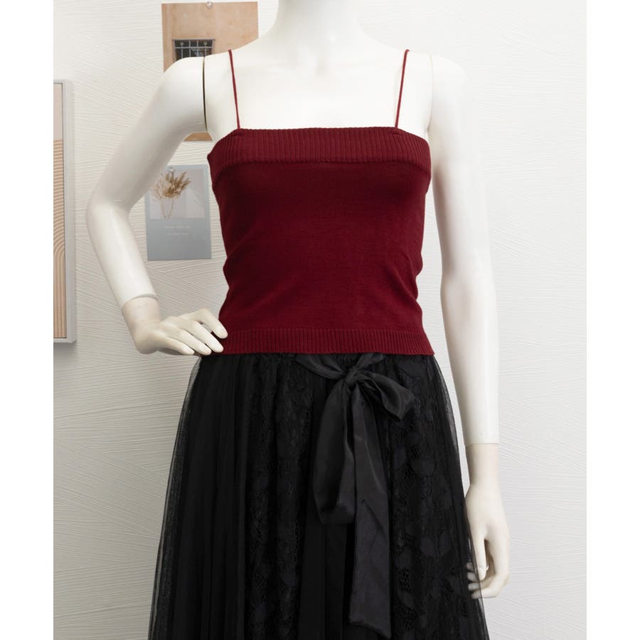 キャミソールはシンプルで体にフィットし、細い肩紐が華奢な印象を与えます。