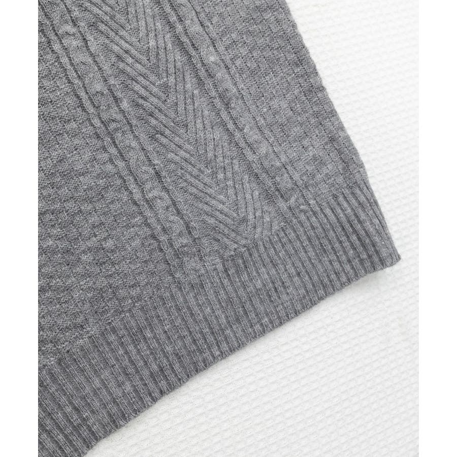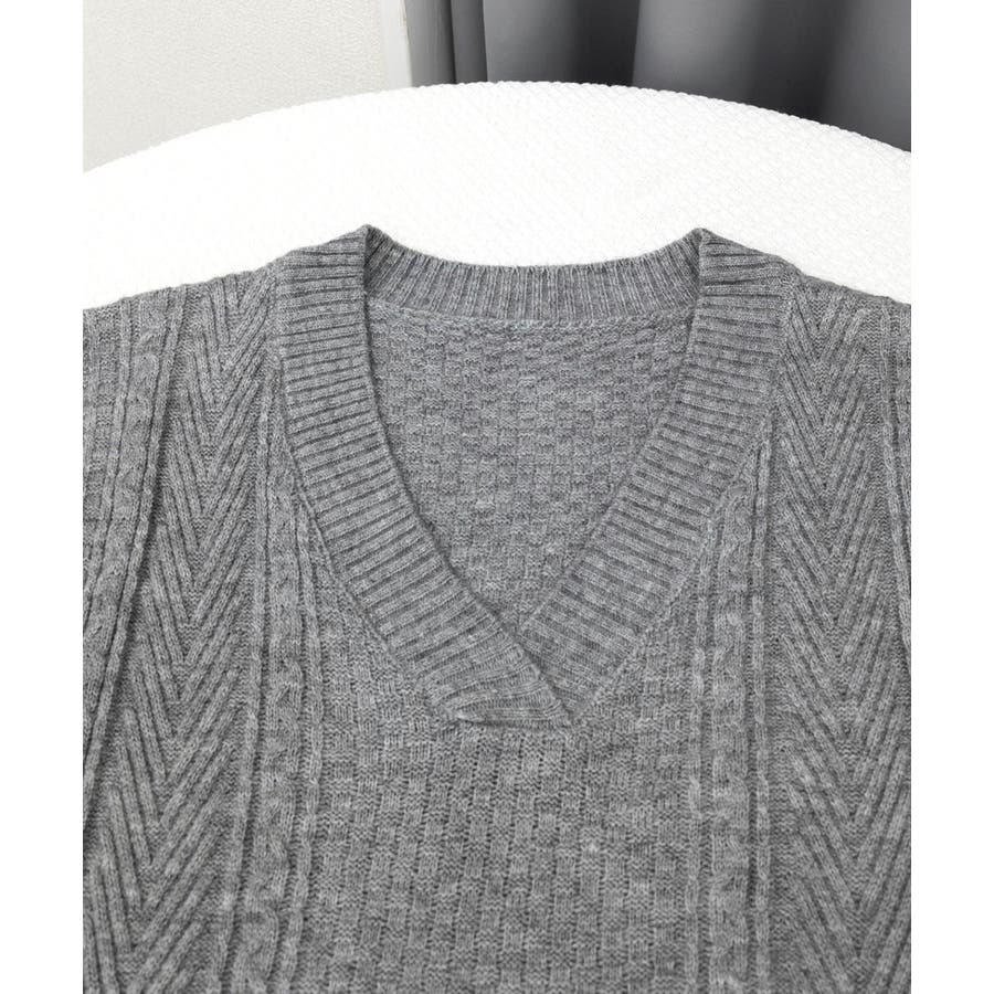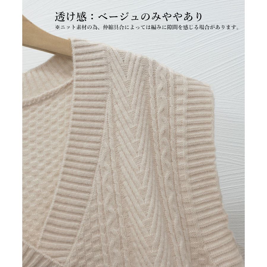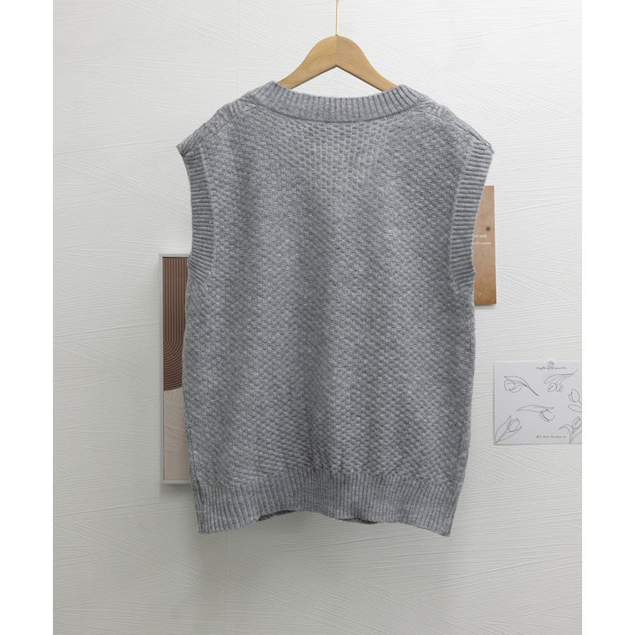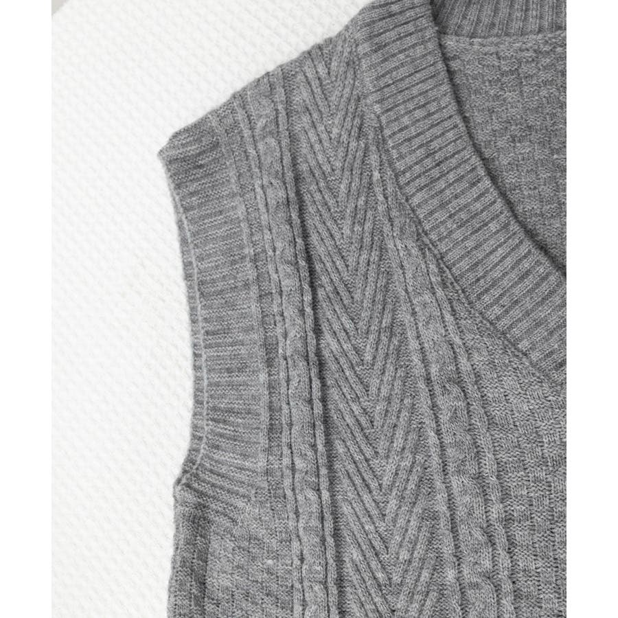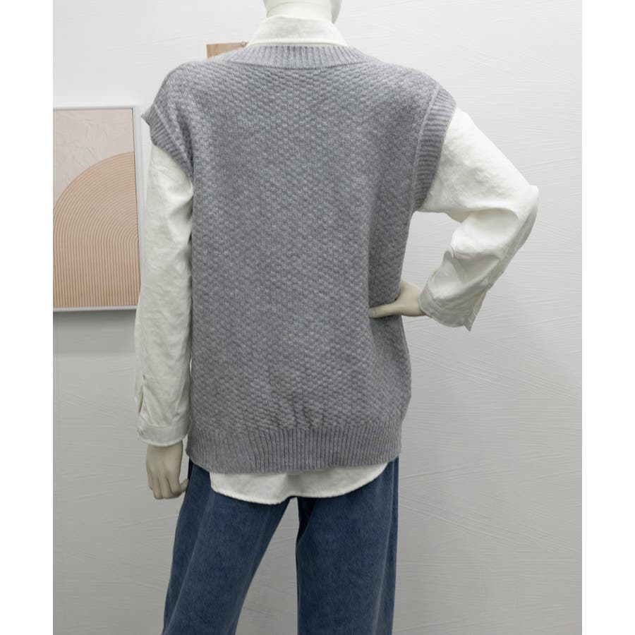 ケーブル編みデザインがアクセントになり、シンプルなコーディネートでも存在感を発揮するニットベスト。