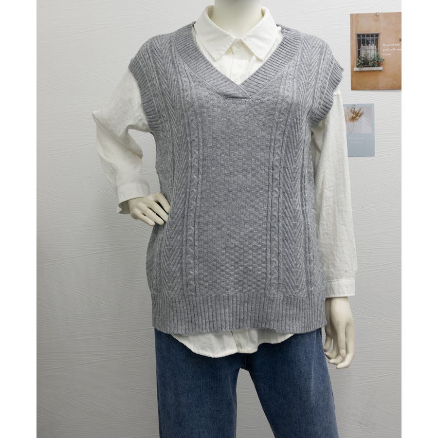 ケーブルニットベスト レディースチョッキ